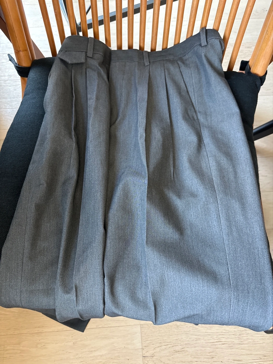 Men’s gray pleated pants. Size Medium but runs small. Flat front. Straight leg.