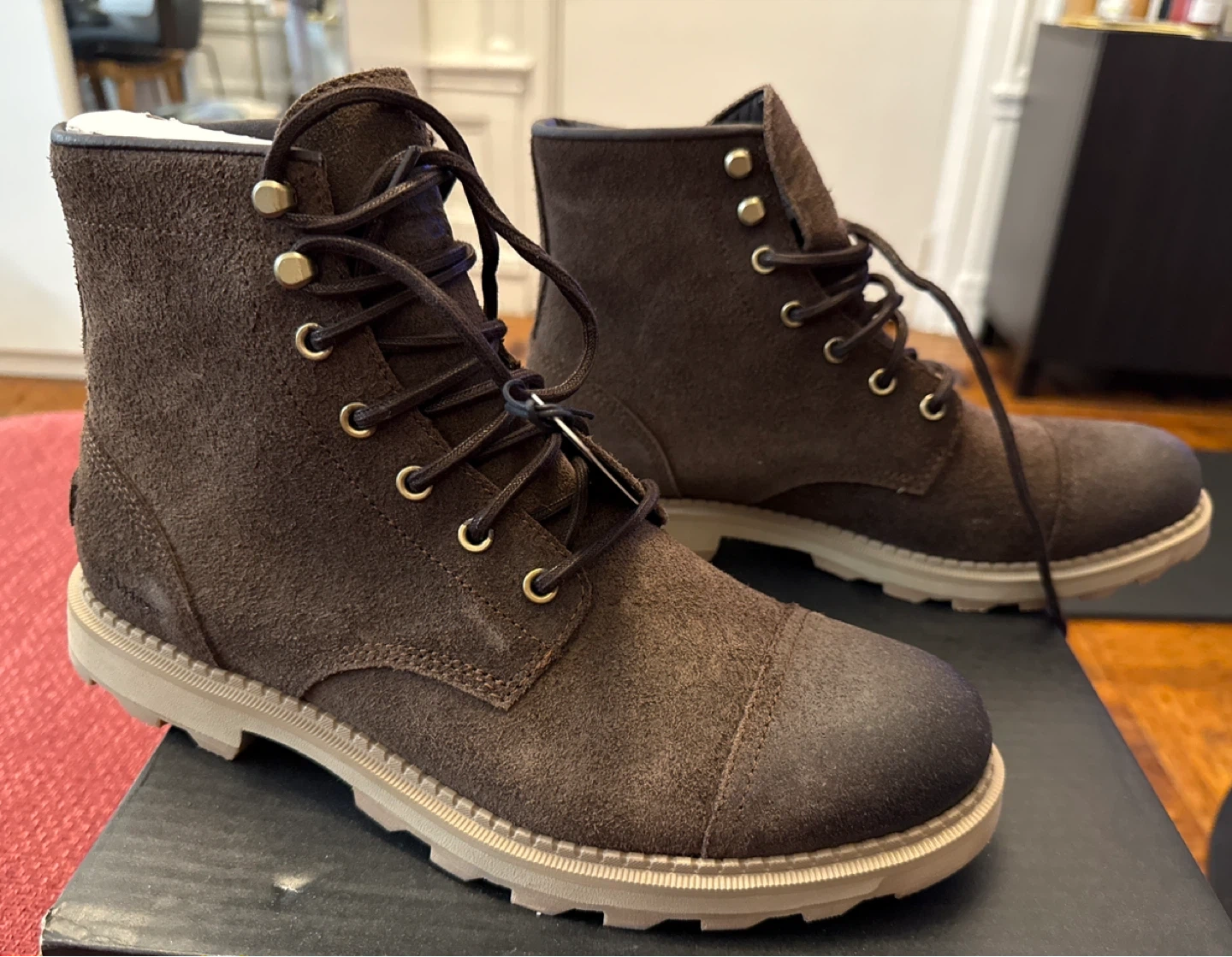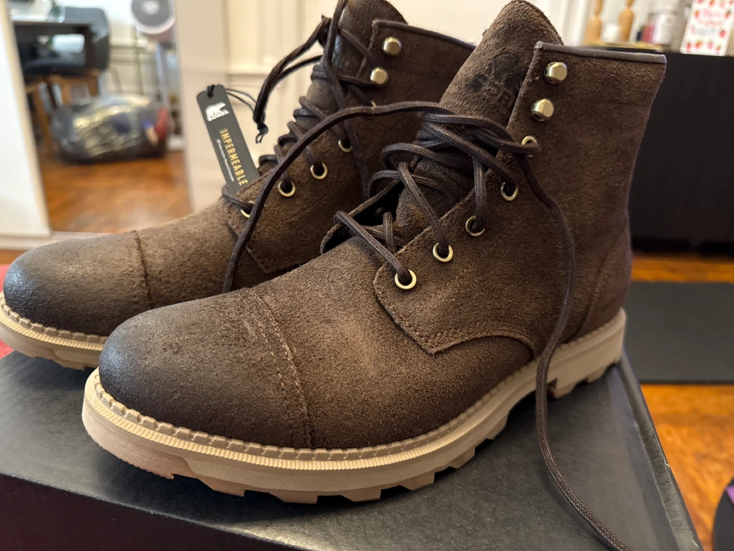 65Selling a pair of new men’s Sorel Madson II Chore Waterproof. Never worn. Color: Tobacco. Size 9. Comes with original box.