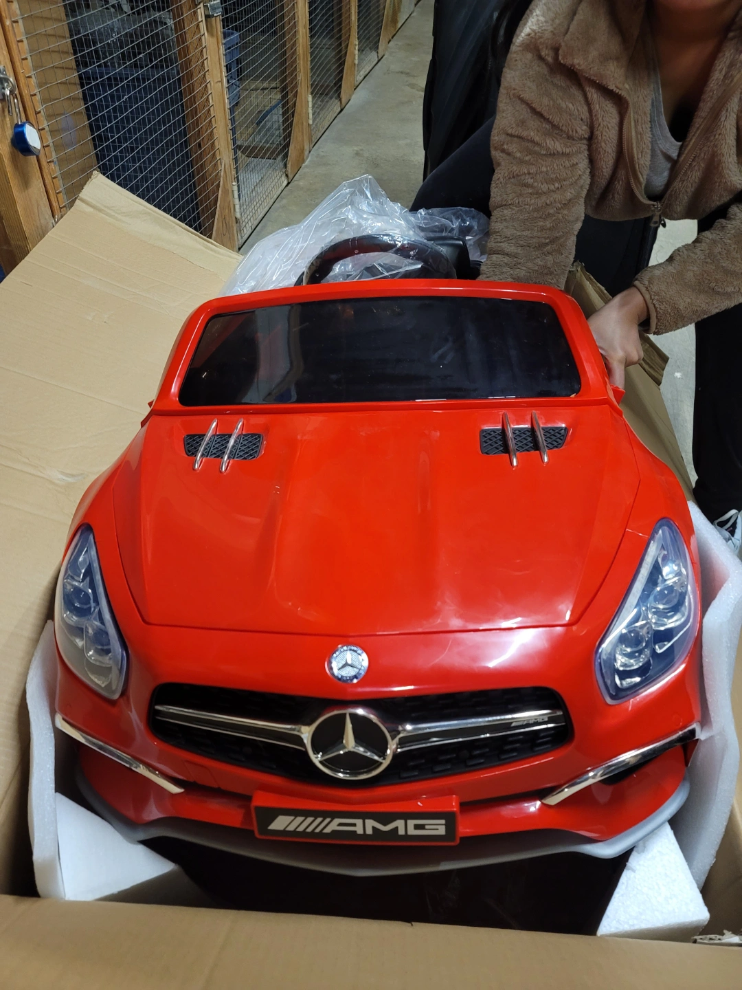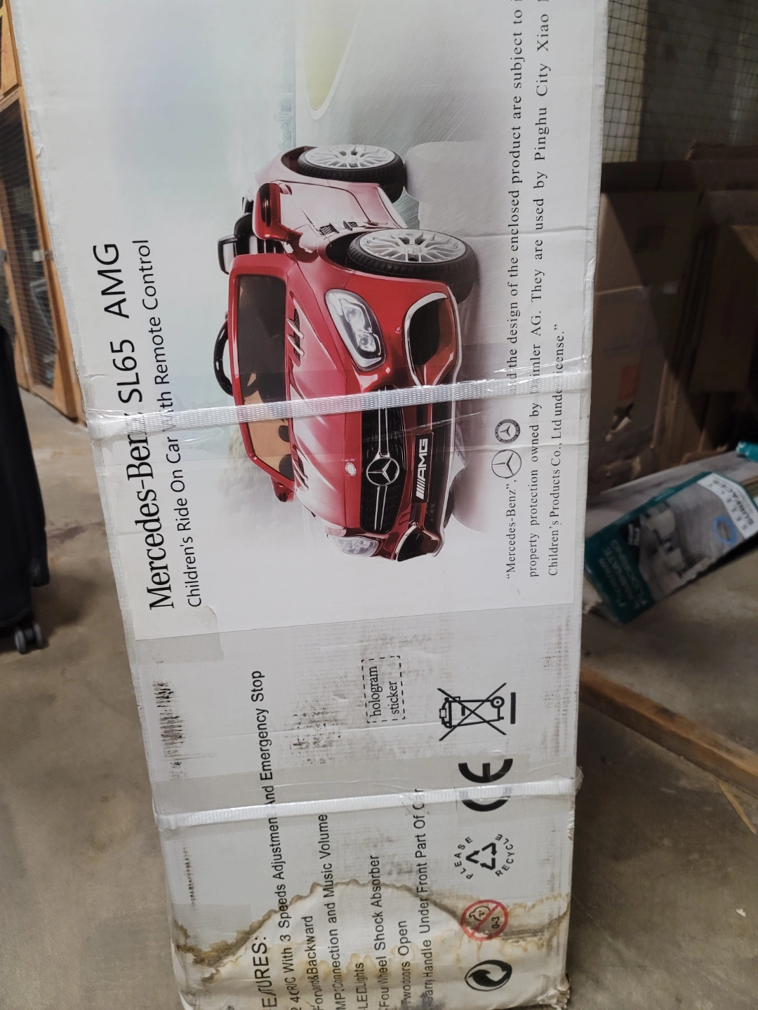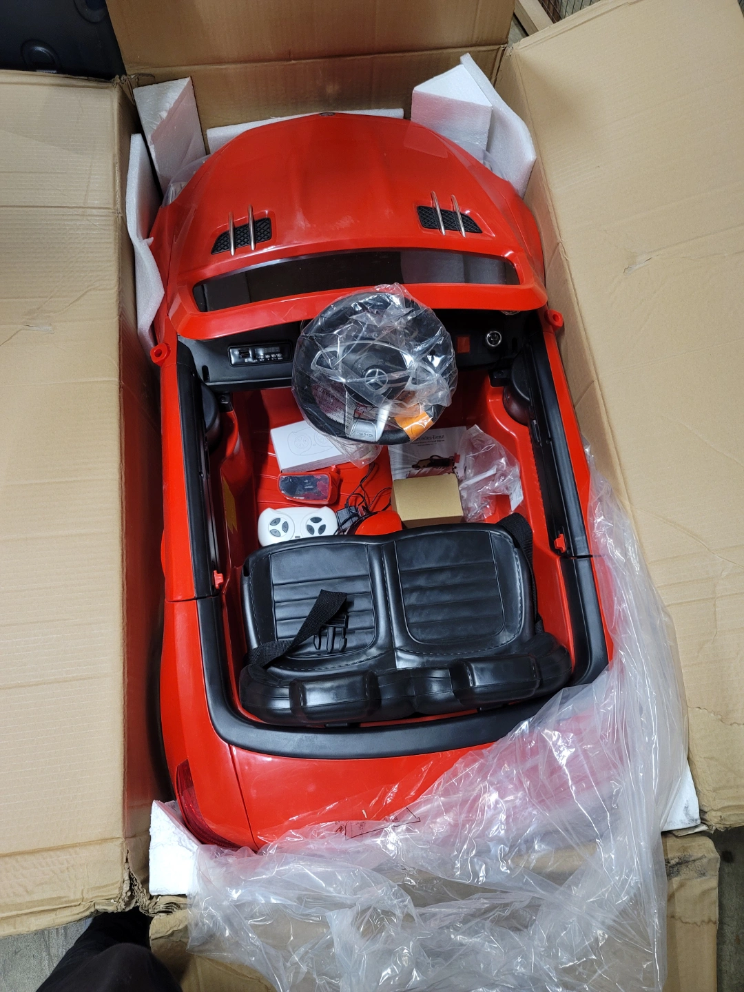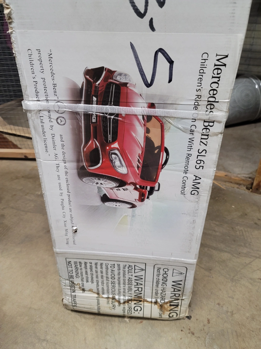 Red Mercedes Benz SL65 AMG children's ride-on car. Includes remote control. New in box.