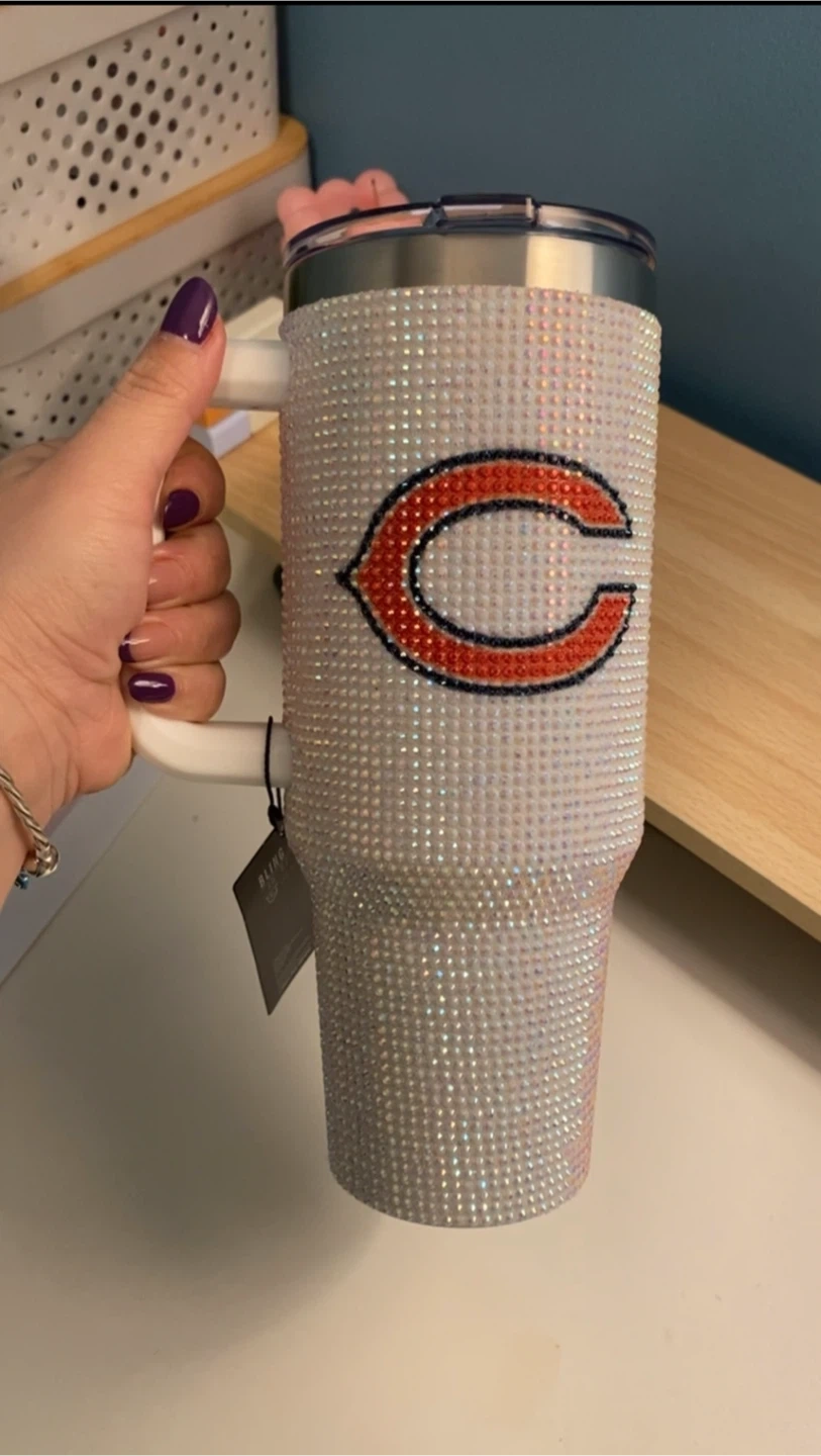 Great for X-mas gift 🎄🐻Check out this Chicago Bears blinged-out 46 oz tumbler from The Memory Company! It's double-wall insulated and copper-insulated to keep your drinks at the perfect temperature. It also features a BPA-free lid and is spill-proof.