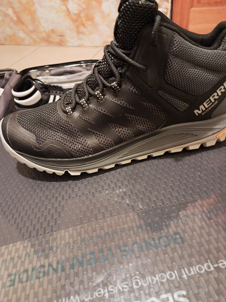 Selling a pair of Merrell Nova 3 Mid Waterproof hiking boots! They are black and waterproof. Great for hiking and outdoor activities