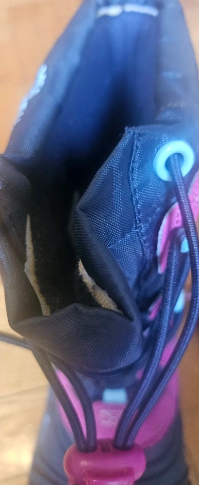10Selling a pair of kid's Merrell winter snow boots in size 4. They feature a navy and dark piink color scheme and are perfect for keeping your feet warm and dry during the winter months.