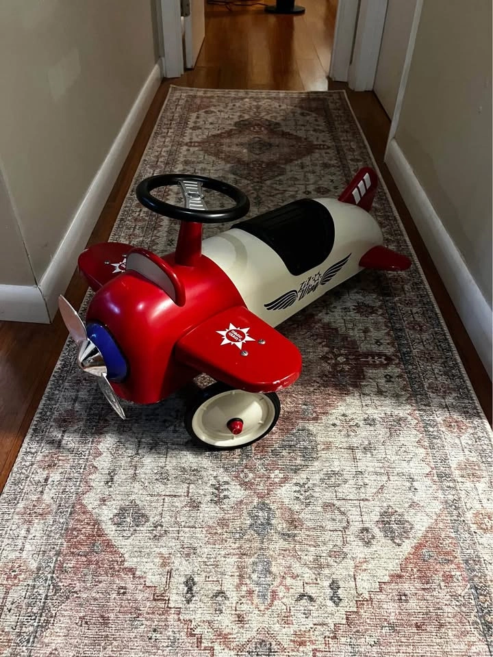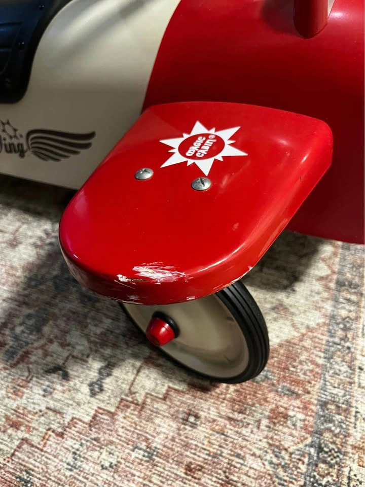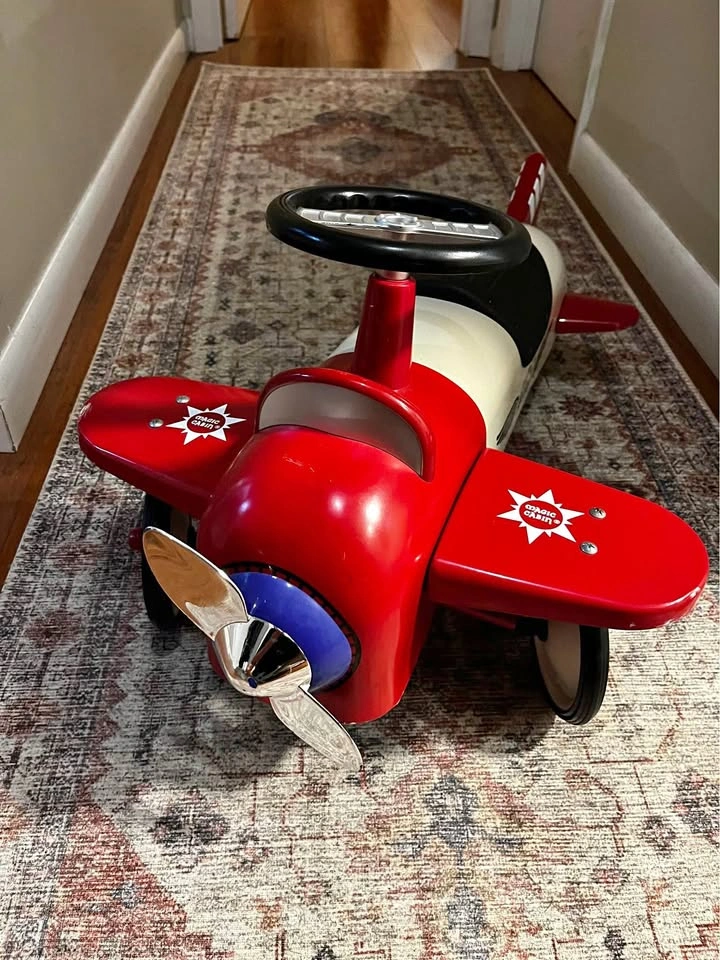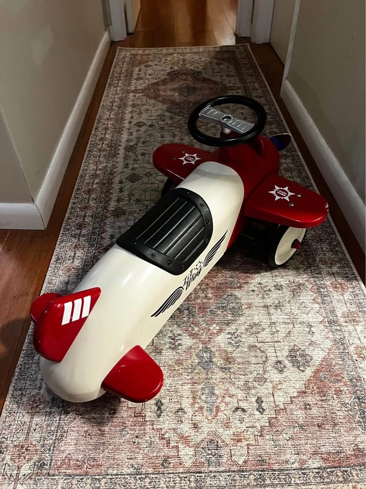 For toddlers to ride on. Whole thing is made out of metal and very sturdy. Also a great center piece decor for a kids room. It great condition aside from some small scuff marks on one of the wing.