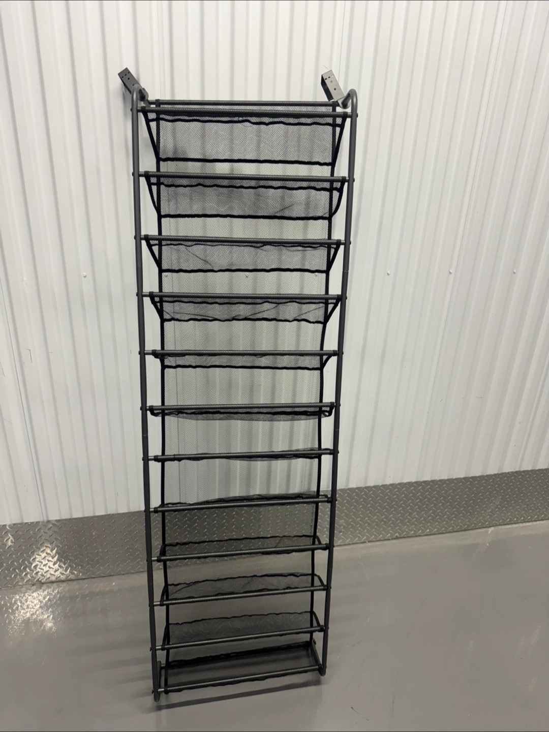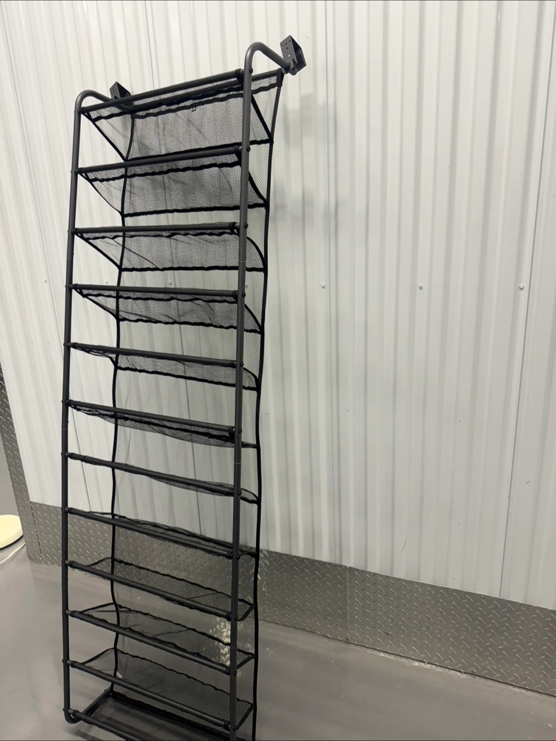 197A metal shoe organizer. Several shelves to store footwear. Designed to hang on a door or closet. A great way to keep your home tidy and clutter-free.