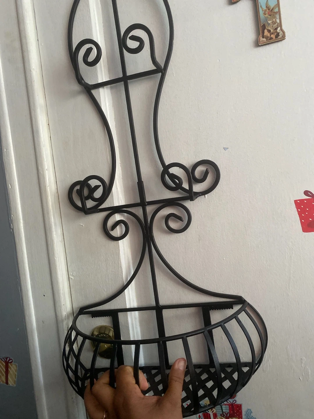 I'm selling a metal wall basket. It is in good condition and would be perfect for storing items or displaying plants