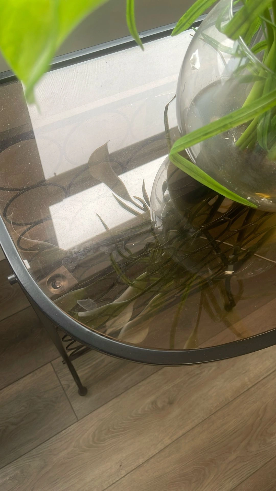 0Elegant metal wine rack featuring a decorative circular design and a smoky brown glass top. Perfect as a wine holder or as a stylish accent table. • Black metal frame • Smoky brown glass top (beautiful tinted finish) • Holds multiple wine bottles • Lightweight, sturdy, and modern • Great for dining rooms, kitchens, or entryways • Decor not included Excellent condition. Ready for quick pickup.