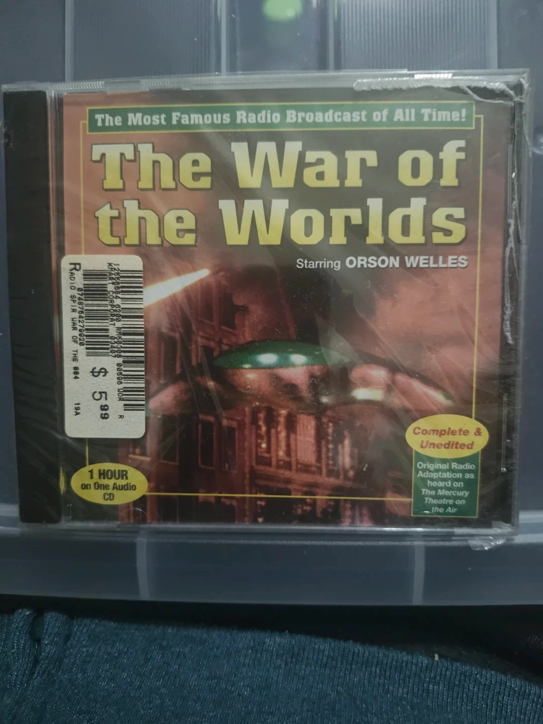 This is the complete and unedited audio CD of "The War of the Worlds" radio broadcast. It's an original adaptation as heard on The Mercury Theatre on the Air. This one-hour CD features the performance by Orson Welles.