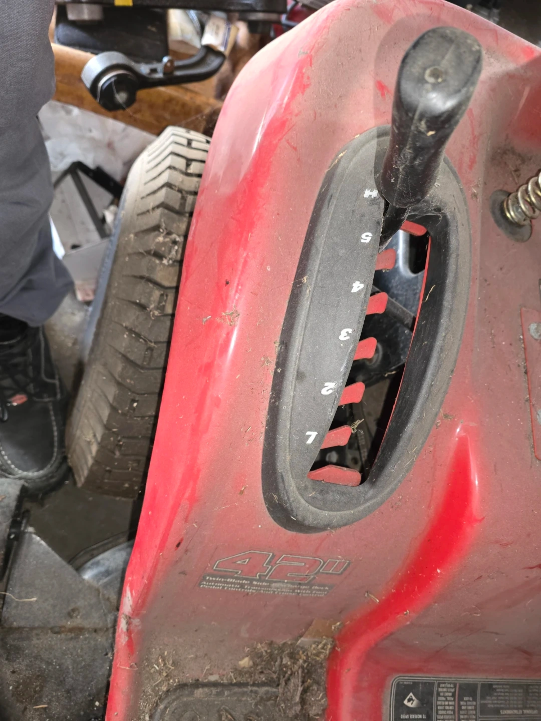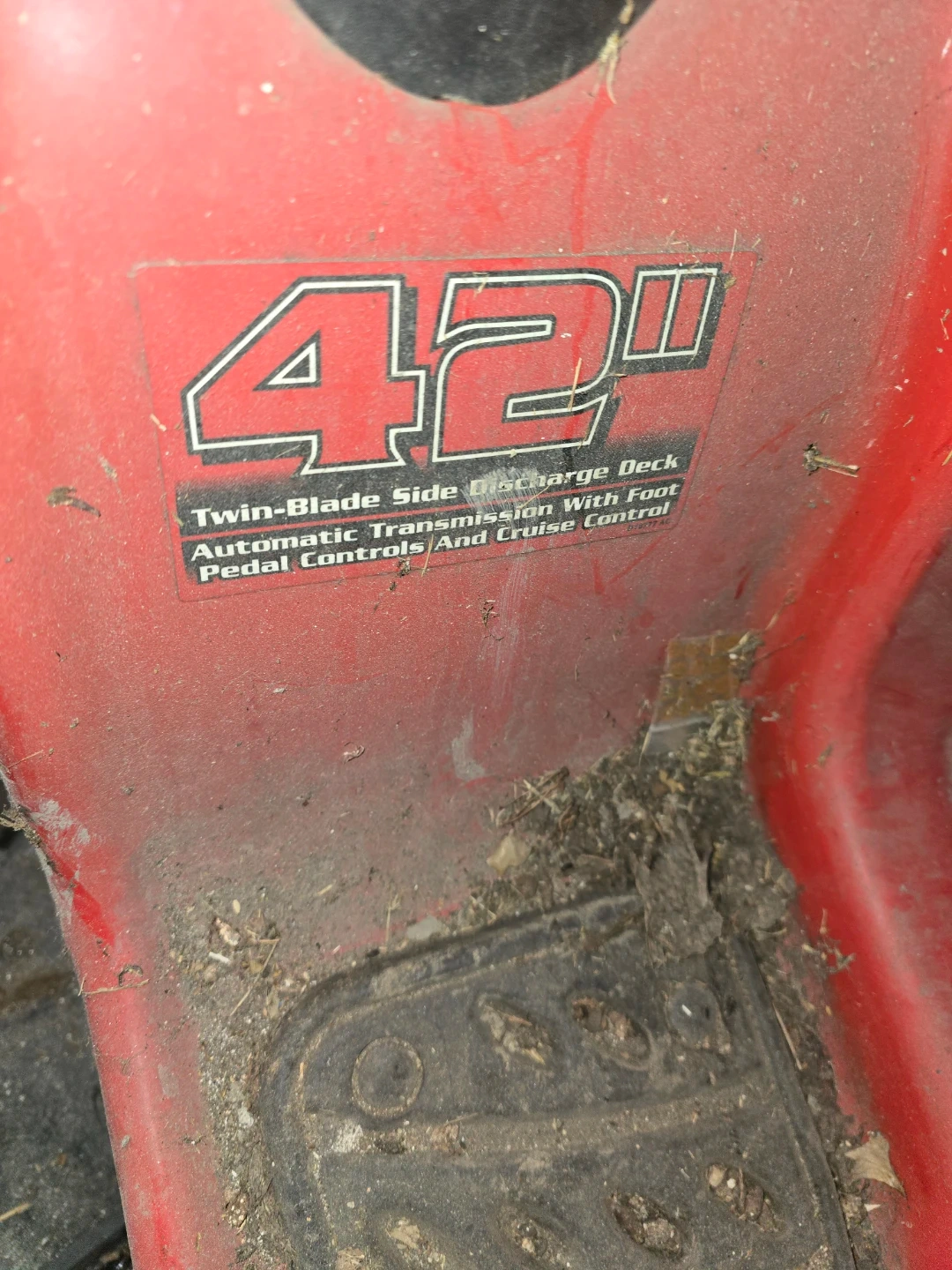 Troy-Bilt riding lawn mower with a 42" twin-blade side discharge deck. It features automatic transmission with foot pedal controls and cruise control. This mower is designed for efficient lawn care. Needs battery and key make an offer those two items aren't that expensive but i need it gone asap my dad's gone house is sold need it gone asap best offer cash takes it I've posted before price cut βοΈ 800 obo cash πΈ π°
