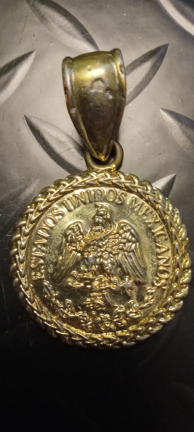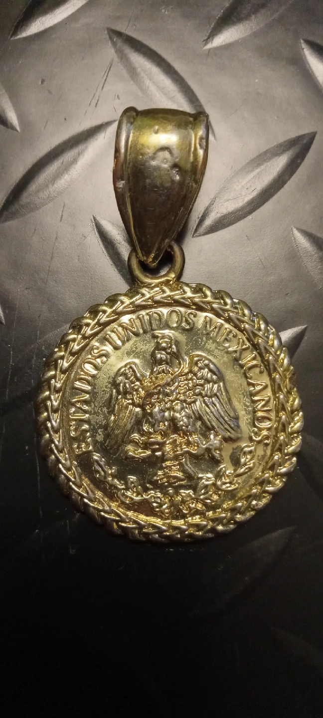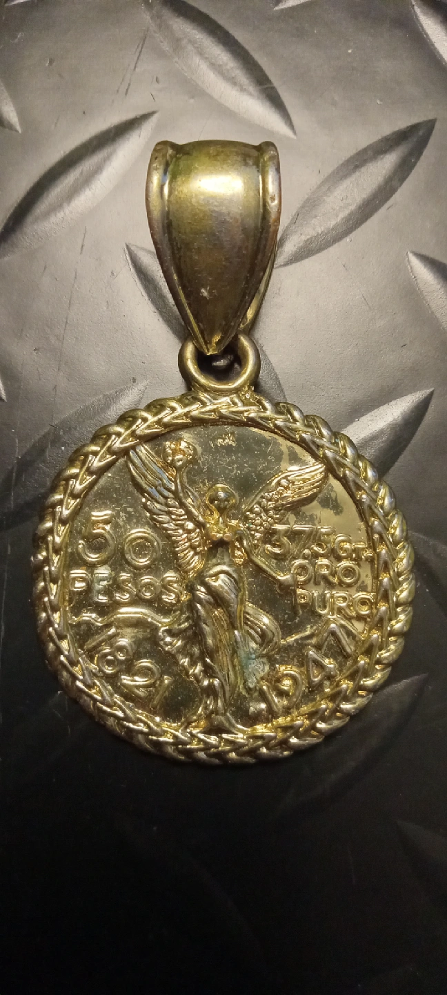 28Selling a pendant featuring a Mexican 50 Pesos gold coin. It's a unique piece with intricate details. Feel free to take a look!