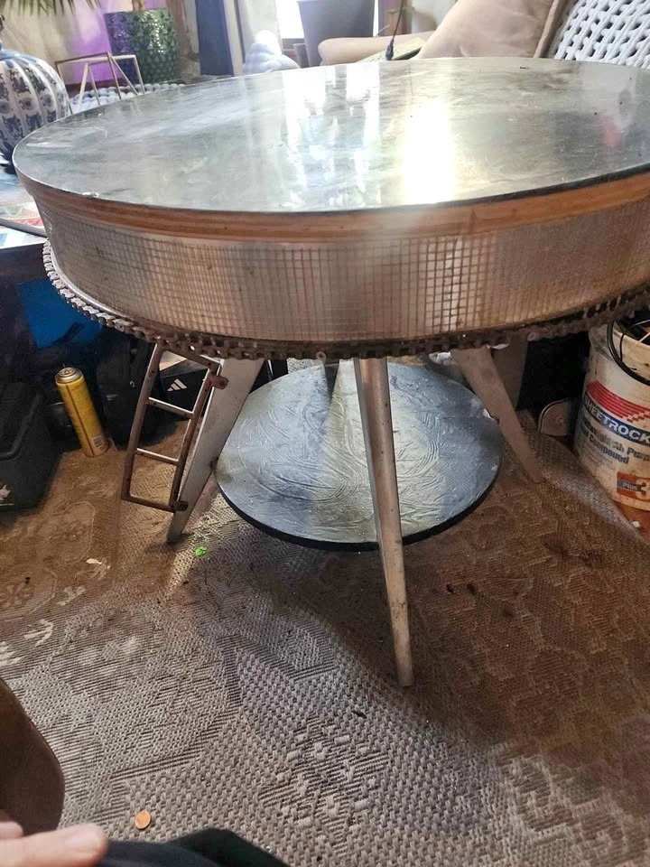 The name of this piece is called Valhalla. when I did a metallic pour on the top it reminded me very much of a motorcycle so I stuck with that theme. It's a one of a kind truly a work of art. Let's get the ball pick up in Wicker Park.