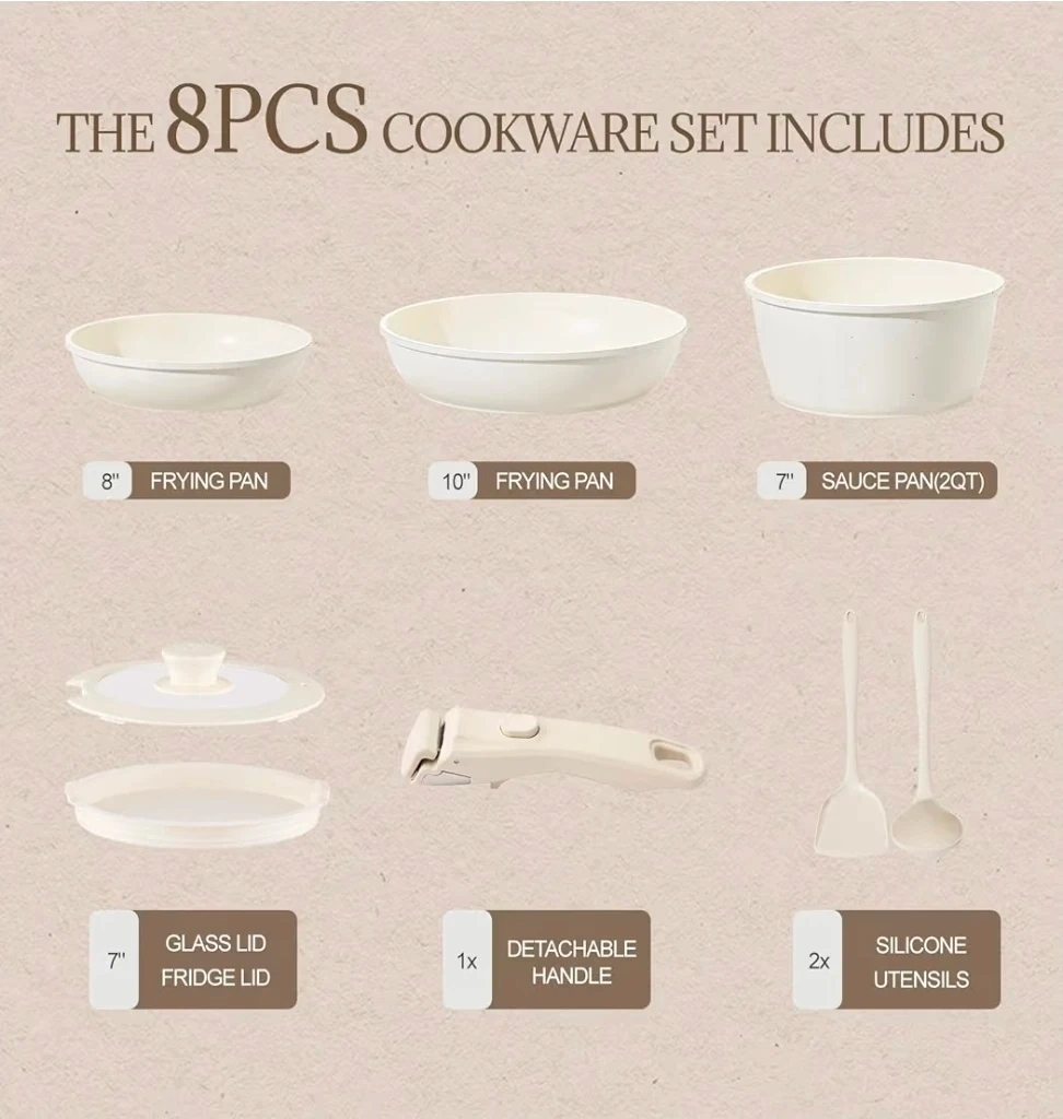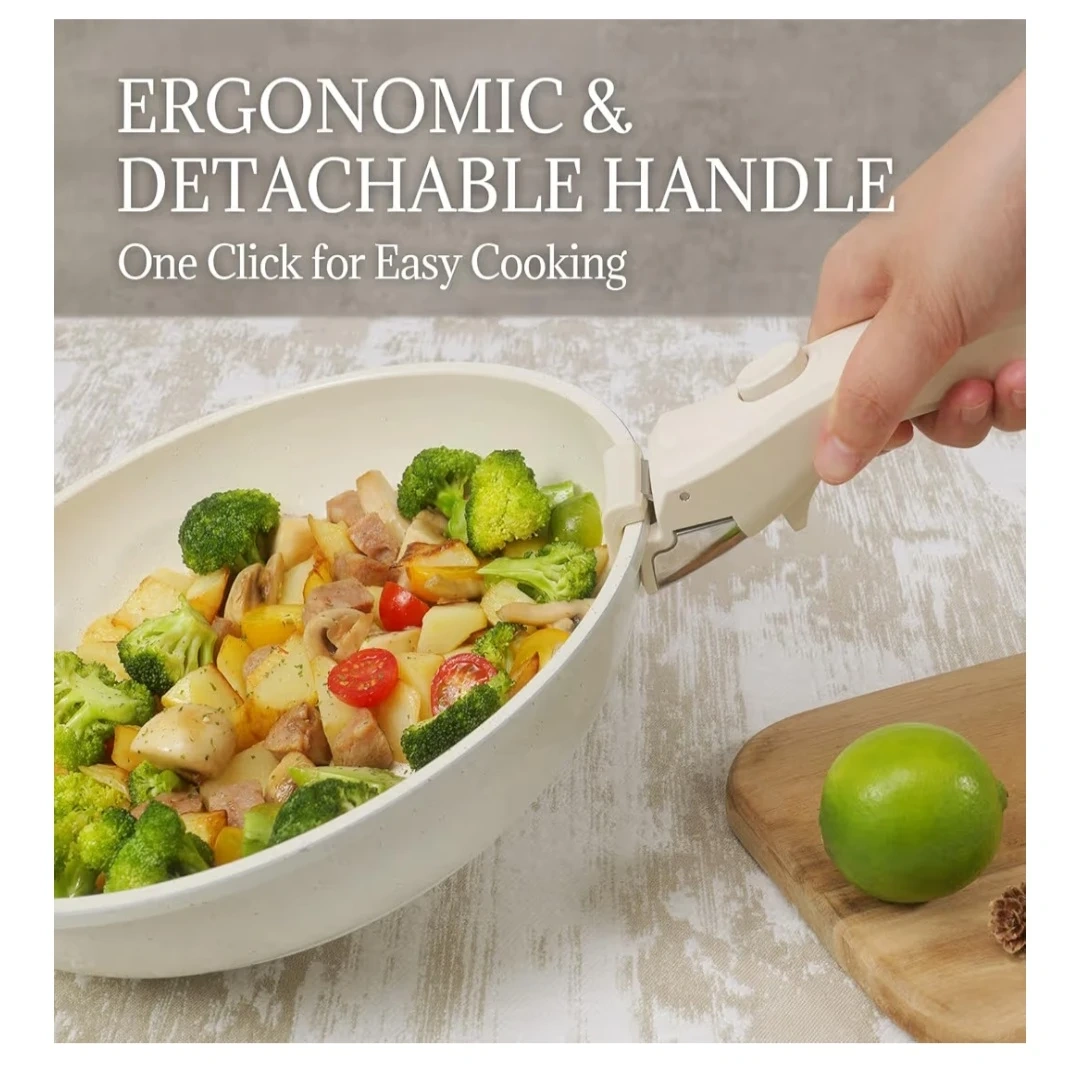 Ceramic Cookware Set Non Stick 8Pcs, Detachable Handle
