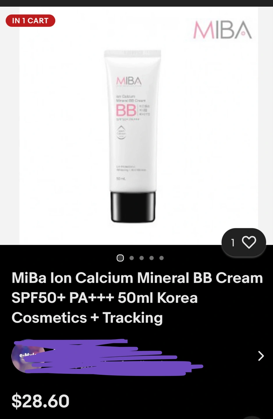 Selling a MiBA Ion Calcium Mineral BB Cream with SPF50. It comes in a 50ml size. This BB cream offers UV protection and whitening and anti-wrinkle benefits. Originally bought for $28.60