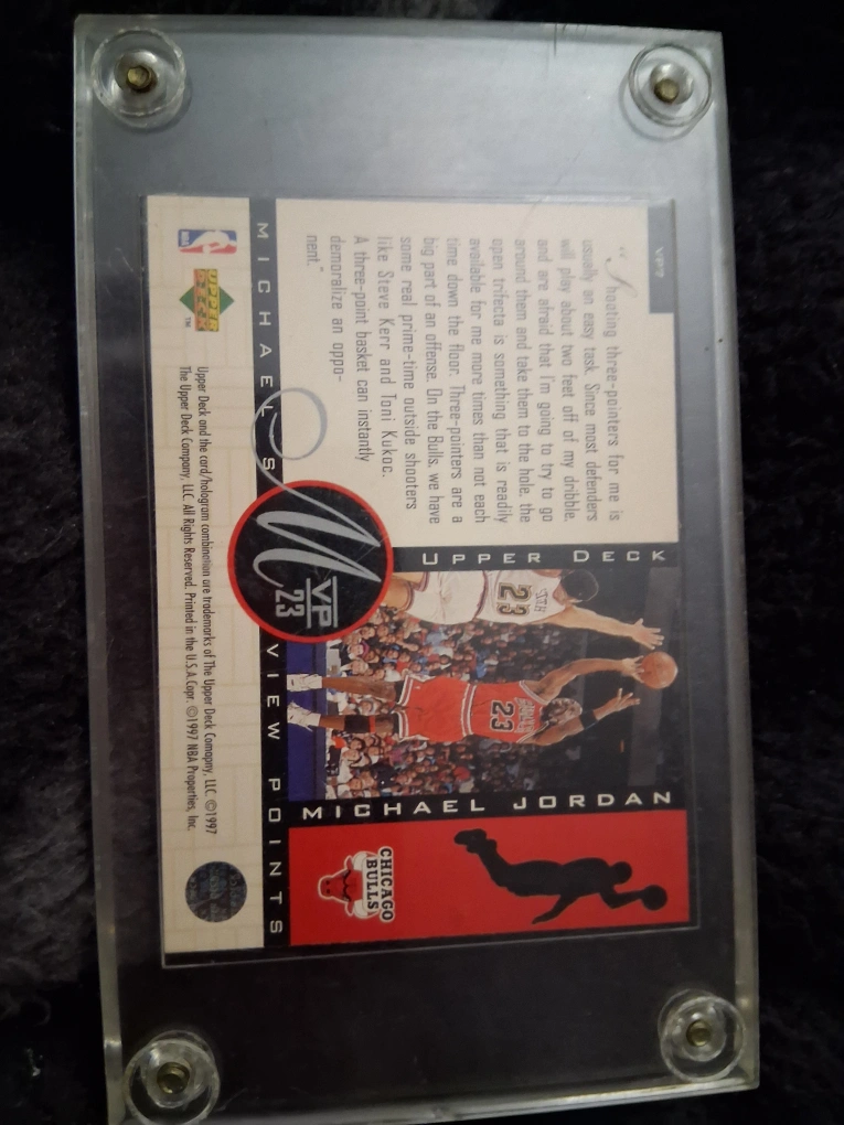 Selling a Michael Jordan Upper Deck View Points basketball card! It's in great condition and comes in a protective case. A must-have for any Bulls or MJ fan!