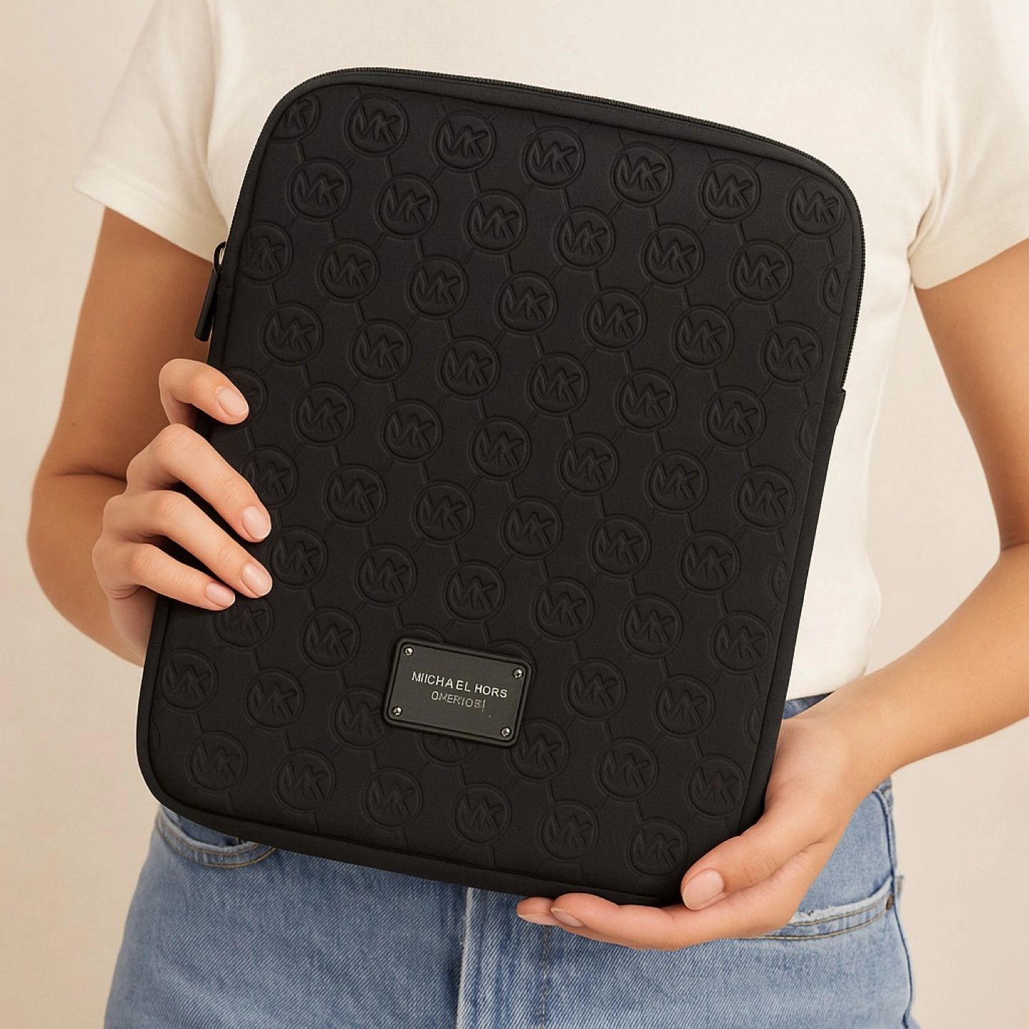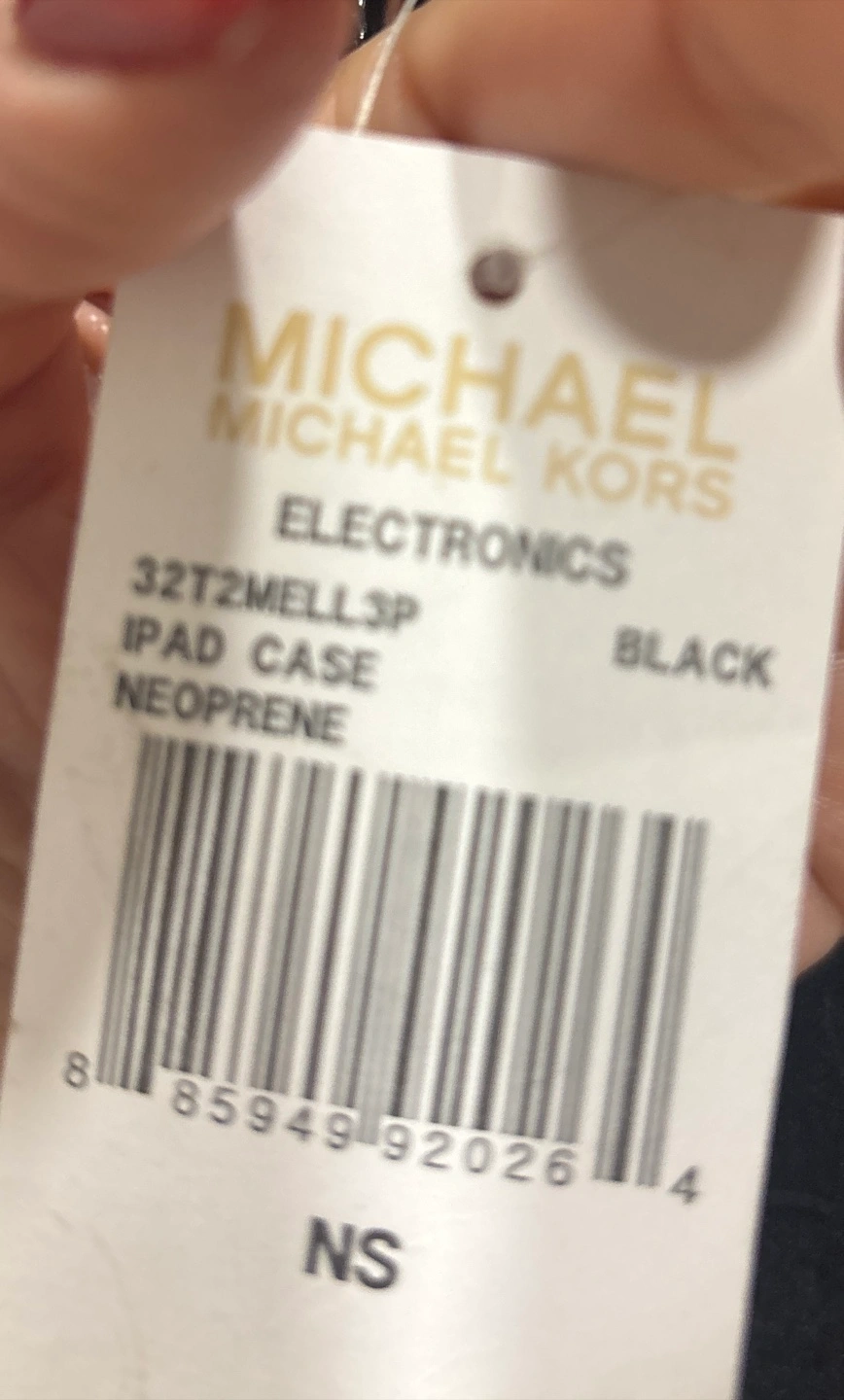 This is a Michael Kors iPad tablet case with an embossed logo design. It's black and made of neoprene. The model number is 32T2MELL3P. It's brand new and ready for a new home! Keep your tech safe in signature style with this Michael Kors neoprene iPad case. Designed with an allover MK embossed logo pattern, this sleek and durable sleeve features a zip-around closure and a polished Michael Kors logo plate (EST. 1981) on the front. • Brand: Michael Kors • Style Code: 32T2MELL3P • Category: Electronics / Accessories • Color: Black • Material: Neoprene (padded for protection) • Features: • Material: Neoprene (padded for protection) • Features: • Embossed MK logo pattern • Zip-around closure • Silver-tone logo plate • Condition: Brand new with original tag (never used) • Fits: Standard iPad / similar-sized tablets (approx. 10") This case is perfect for everyday use, travel, or gifting - combining fashion with function.