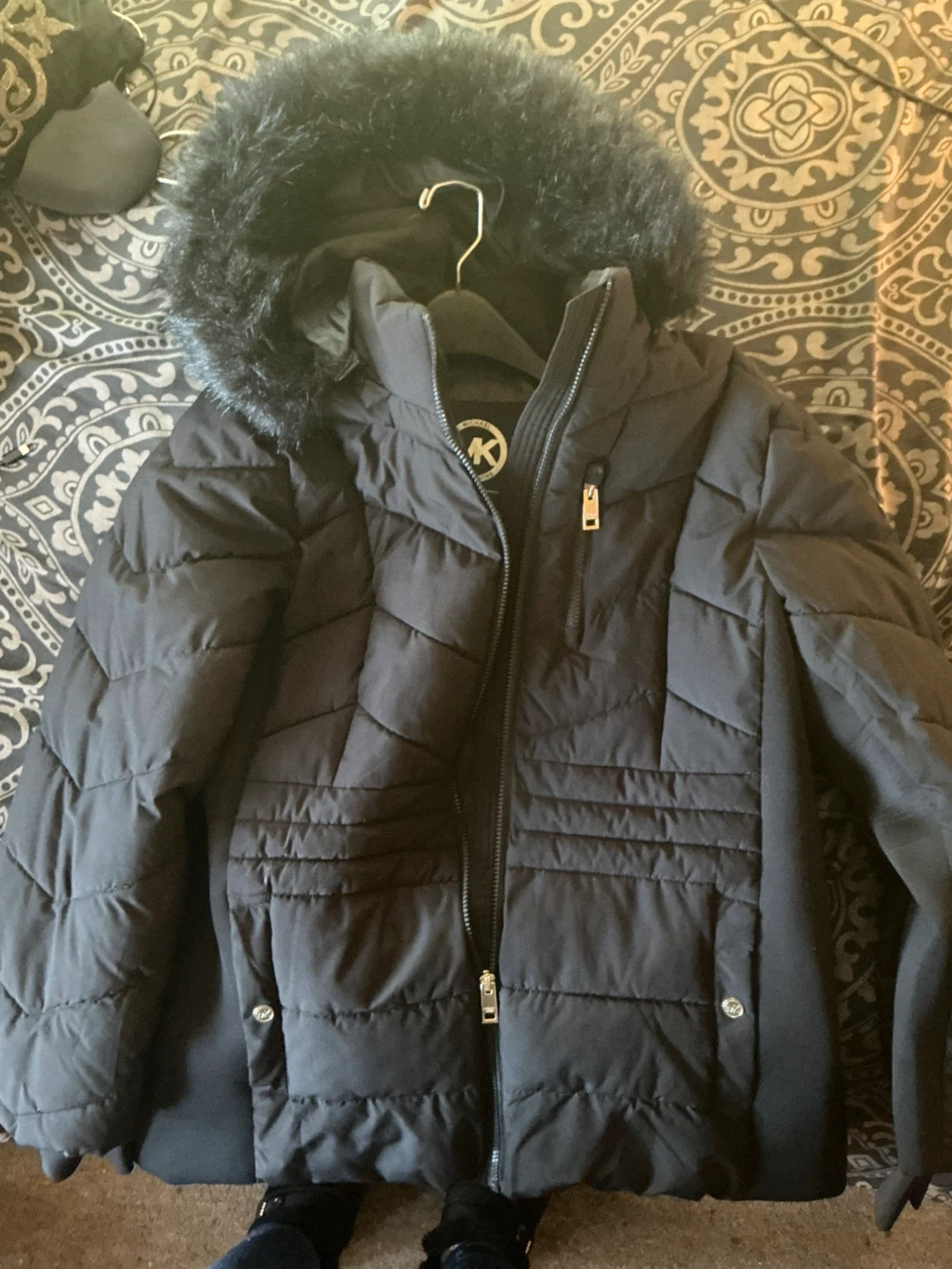 65Selling a stylish Michael Kors black puffer jacket. It's a size XL and features a faux fur-trimmed hood. Perfect for staying warm and fashionable!