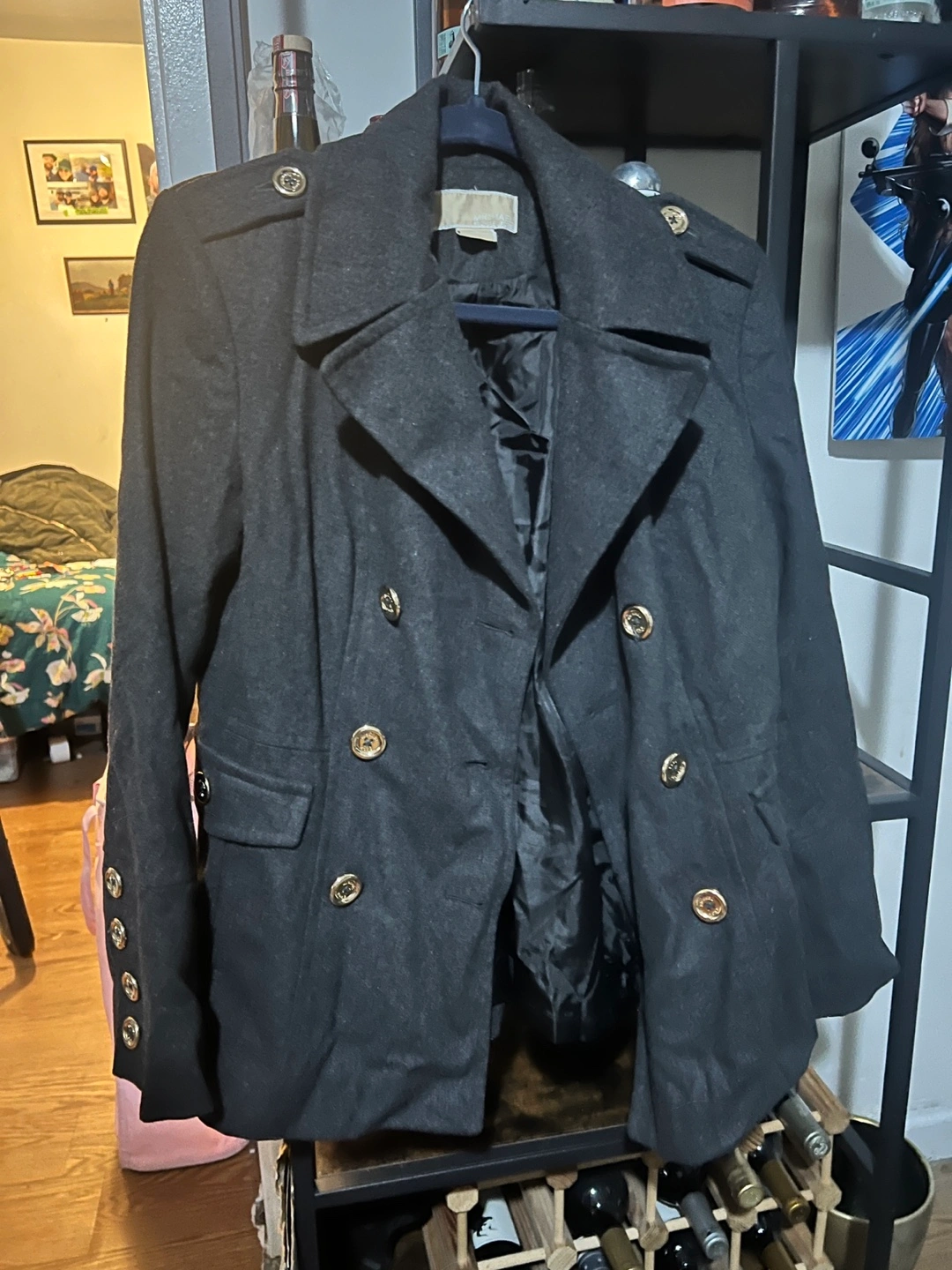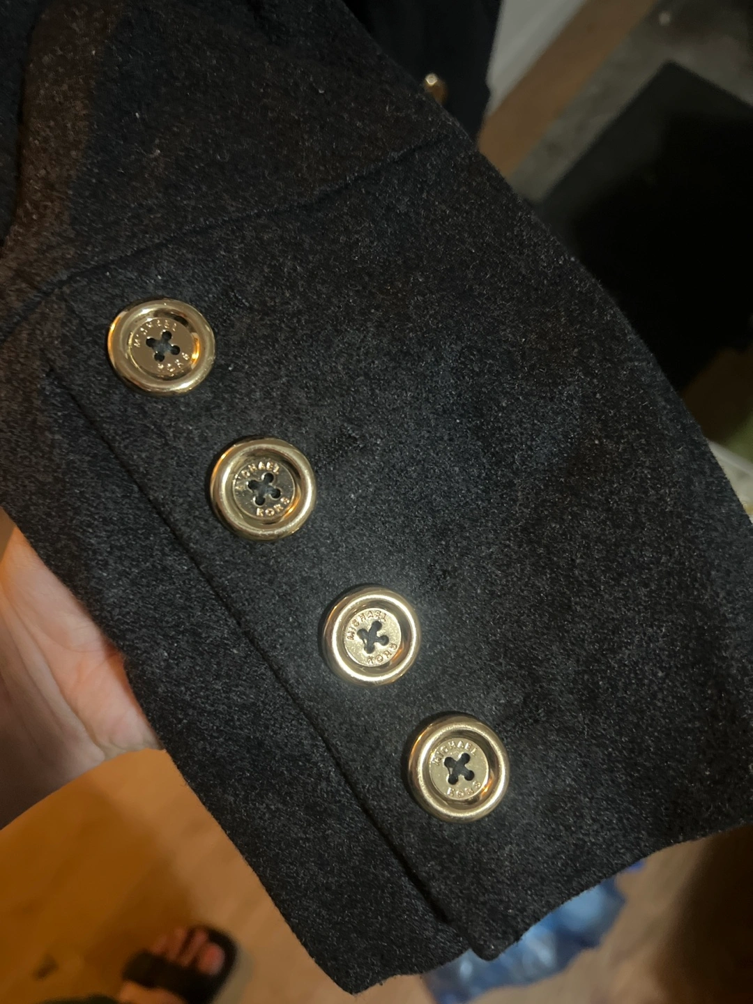 Selling a stylish black wool blend military coat from Michael Kors. It features gold-tone buttons and a double-breasted design. Perfect for adding a touch of sophistication to your wardrobe!