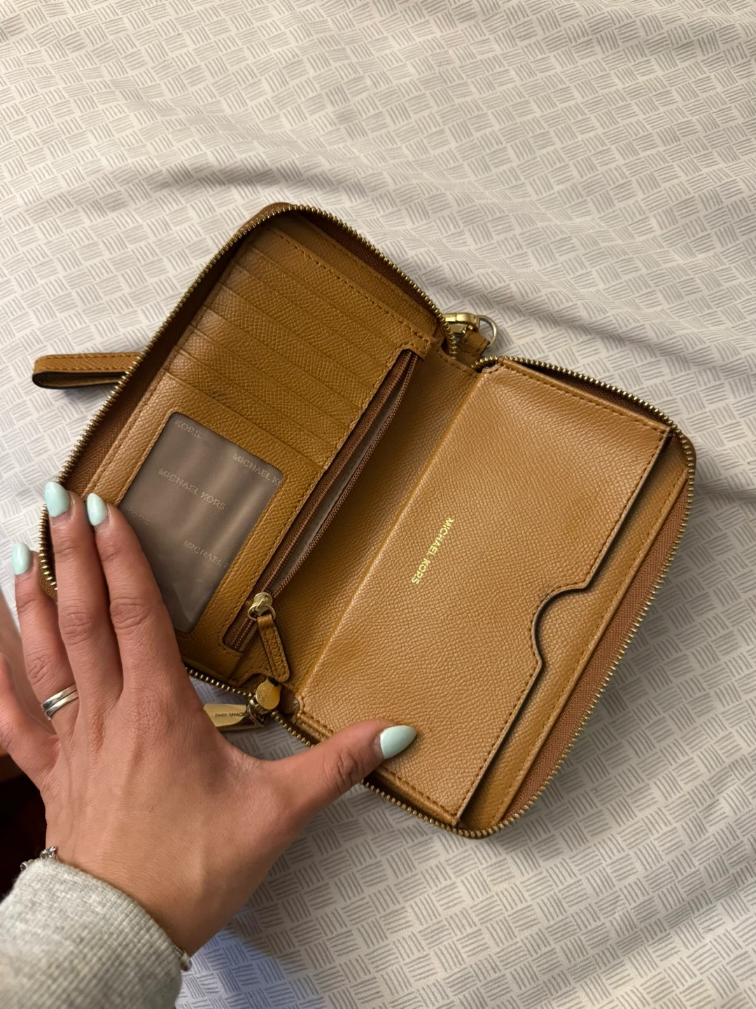 Selling a Michael Kors wallet in brown. It's in great condition and has plenty of space for cards and cash
