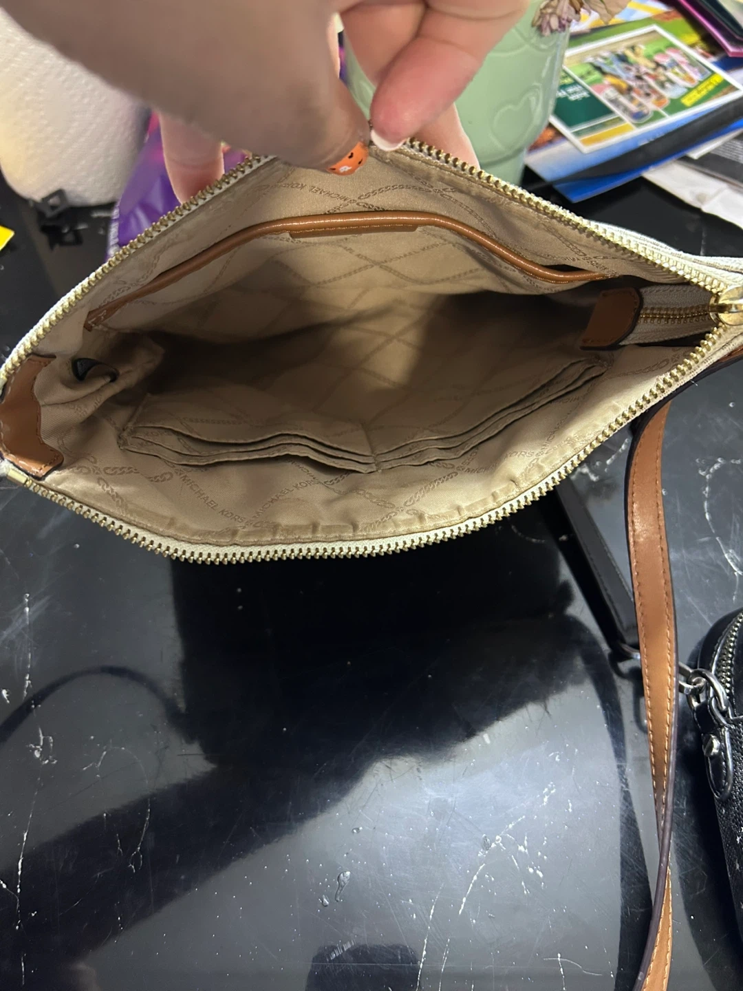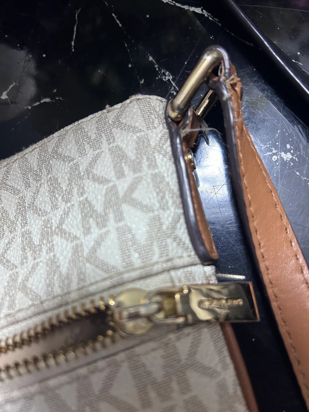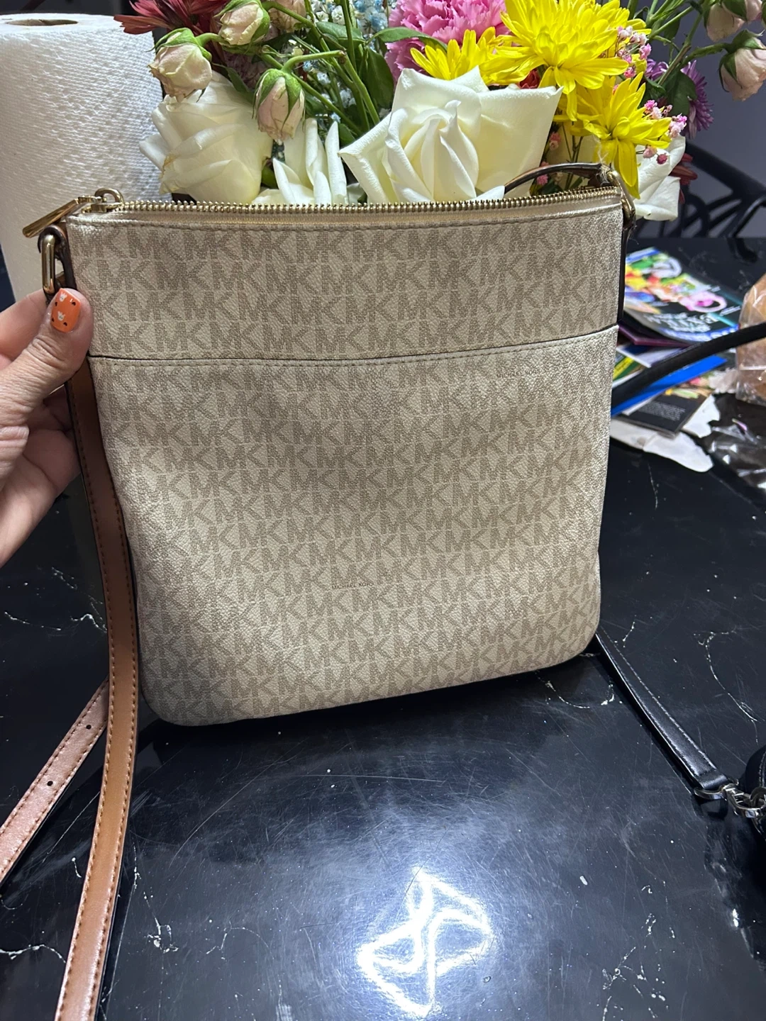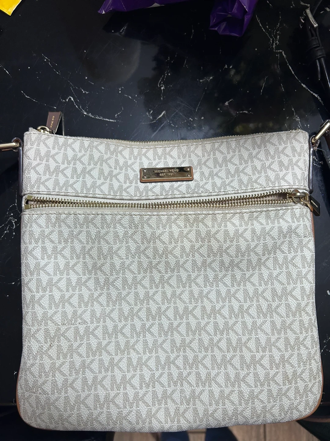 60Selling a Michael Kors crossbody bag. It shows some signs of wear, particularly on the strap and zipper. Still a stylish and functional bag!