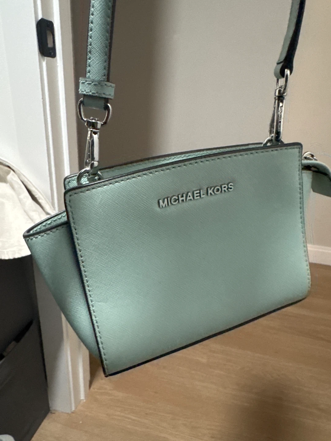 7Selling a cute Michael Kors crossbody bag in a lovely light blue color! It's in great condition and perfect for everyday use. The material is nice and durable. It's a stylish and practical accessory to complete any outfit