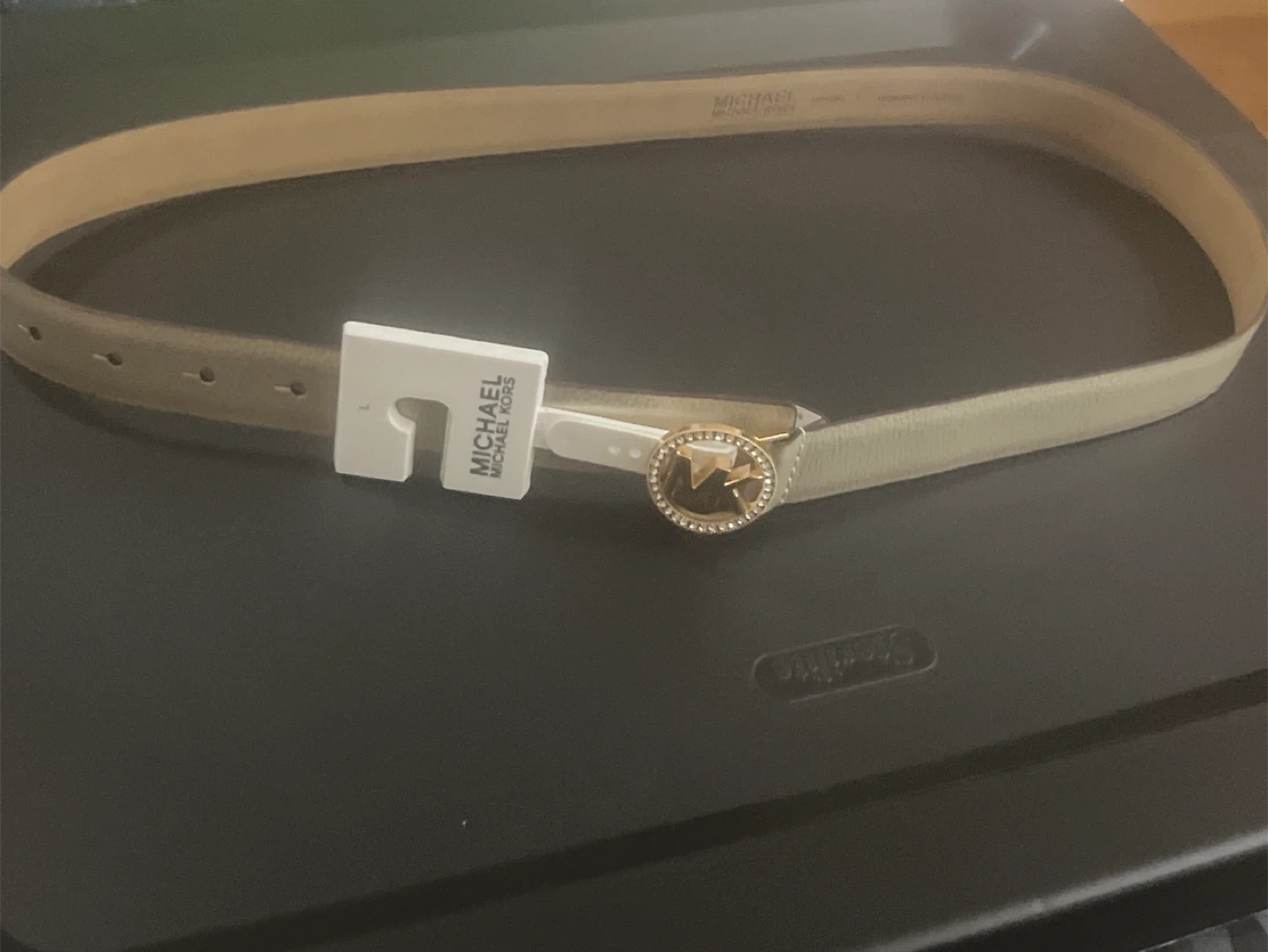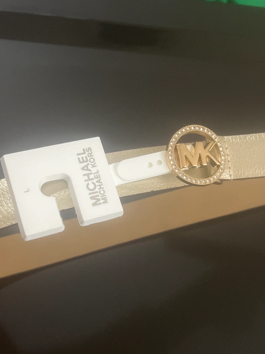 10Selling a Michael Kors gold belt in size L. It's new slightly damaged and has a stylish MK logo buckle. Originally priced at $78. #BLACK FRIDAY SALE!!