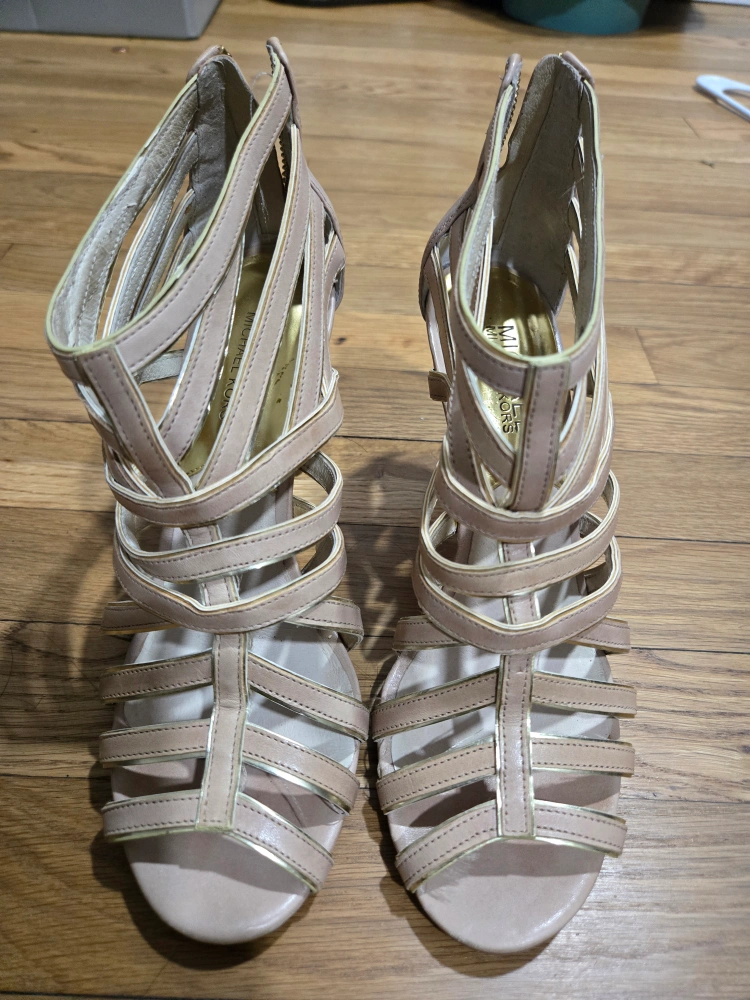 Selling a pair of Michael Kors heels in size 7. They feature a strappy design and a zipper back. Perfect for a night out!