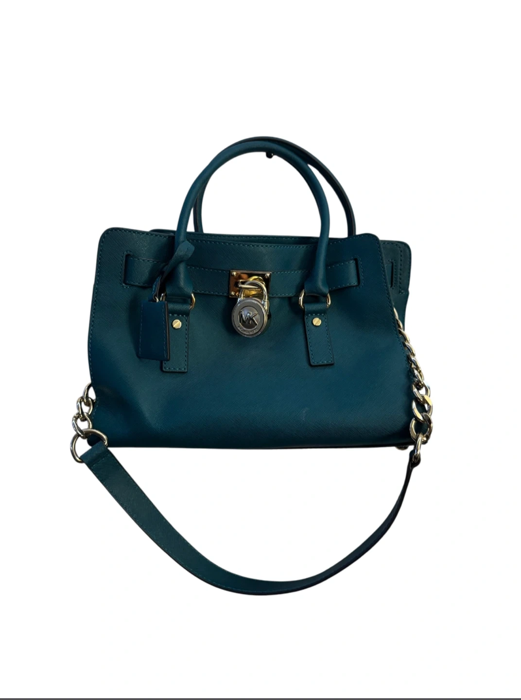 Selling a Michael Kors Lock bag in a teal color. It's in great condition and is perfect for everyday use or a night out.