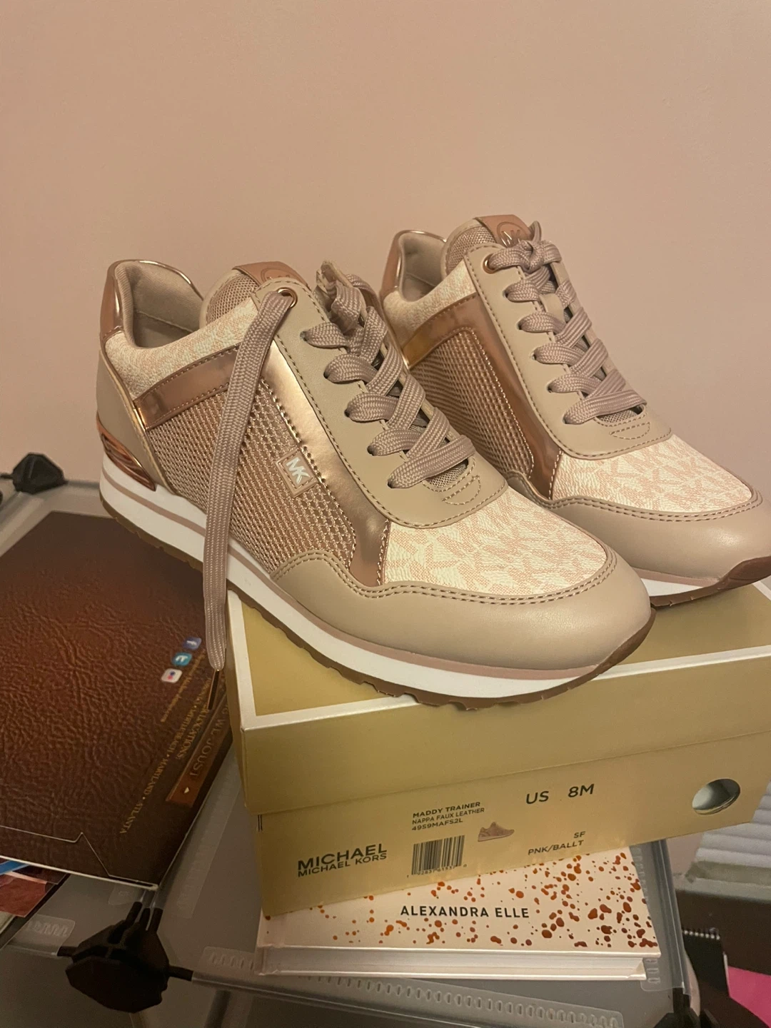 78Selling a pair of Michael Kors Maddy Trainer sneakers in US size 8M. These stylish sneakers come in a beautiful pink/ballet color and include the original box