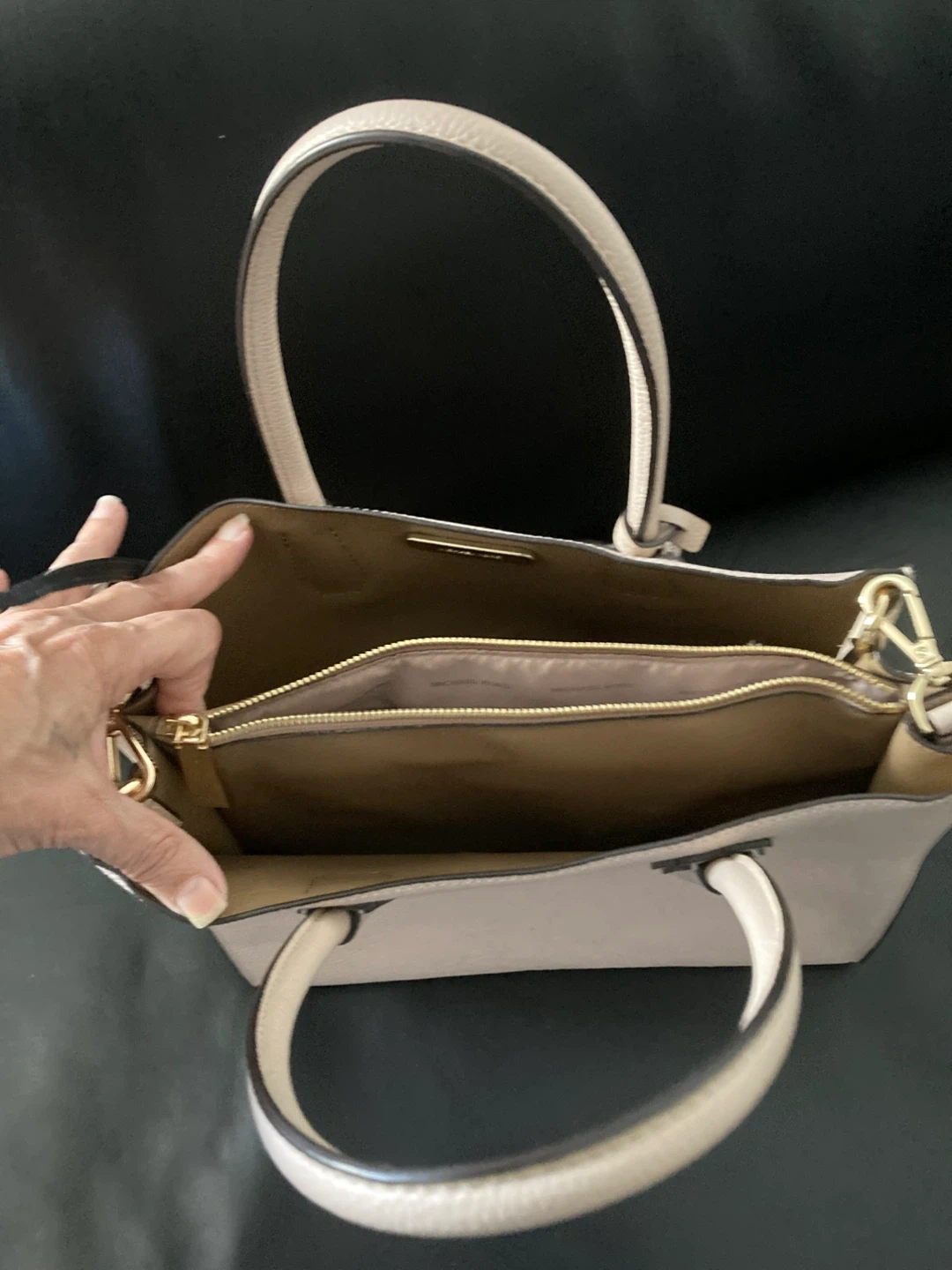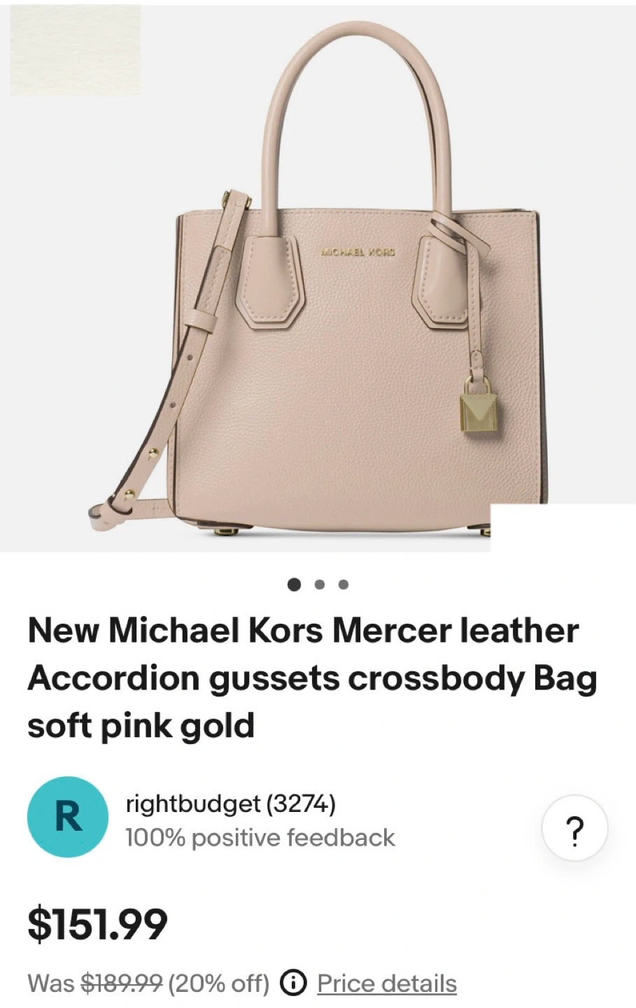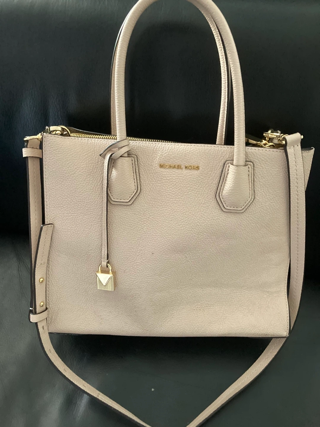 Selling a Michael Kors Mercer leather crossbody bag in soft pink gold. This stylish bag features accordion gussets. Originally bought for $151.99
