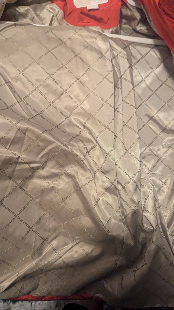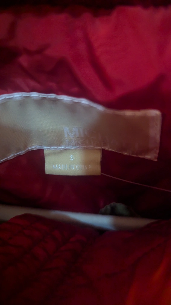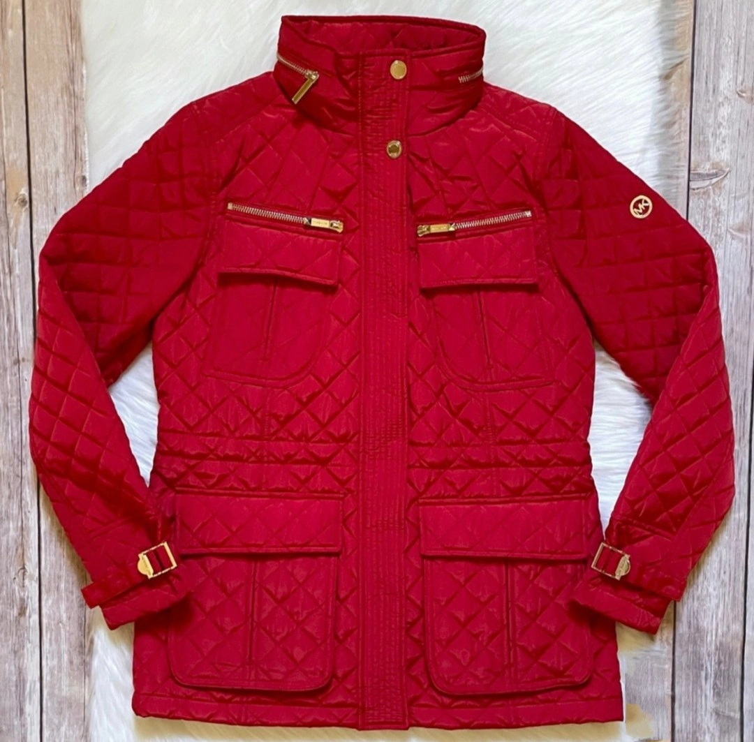 170Women's red quilted jacket with concealed hood. Size small. Gold zippers and hardware. Snap and zip closure. Pockets. Literally been wore once. Just trying to free up space in my closet. Retails for $255