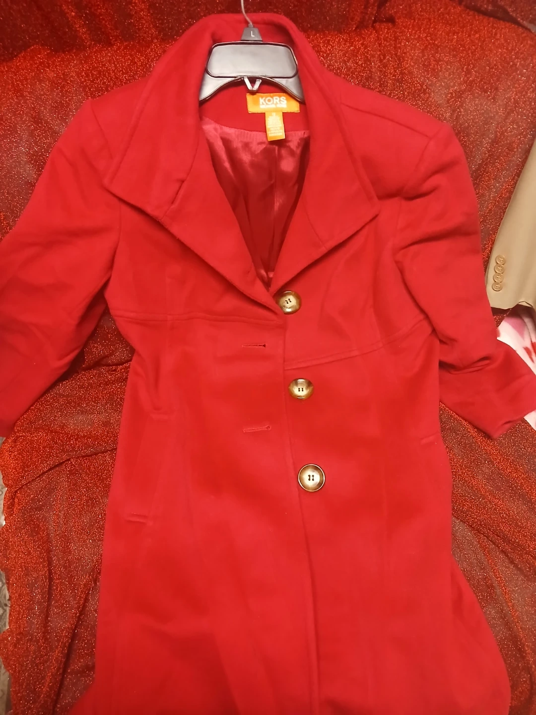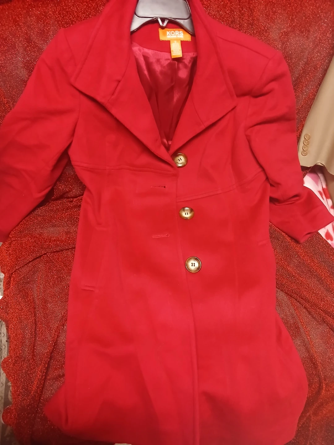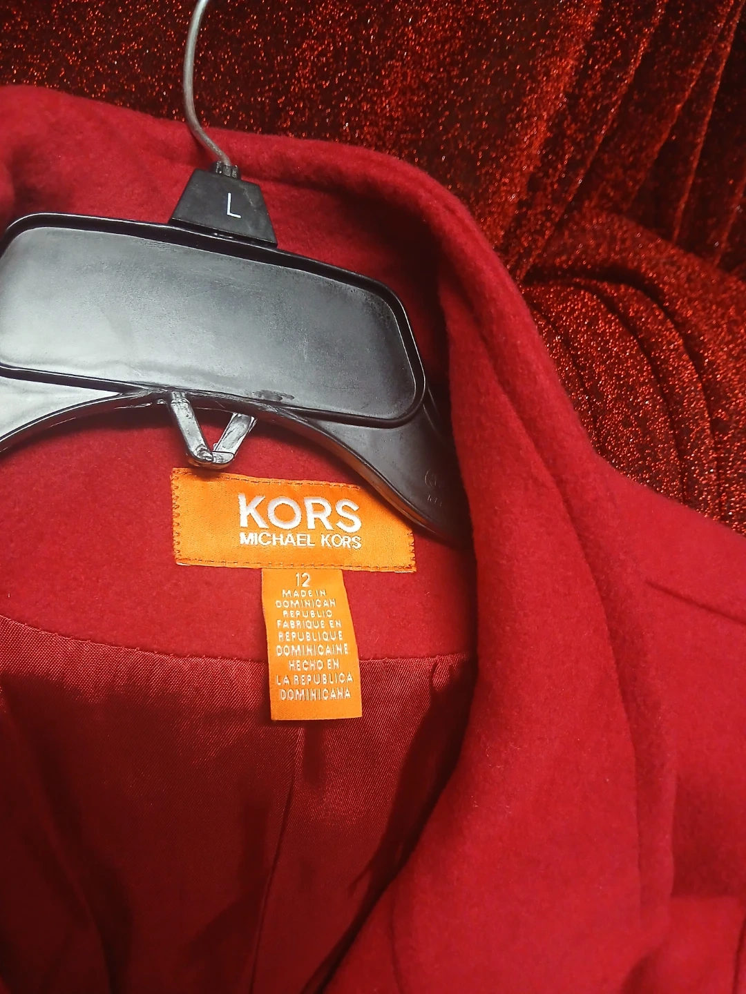 15Selling a stylish Michael Kors coat in a vibrant red color! It's a size 12 and made from a comfortable wool blend. Perfect for adding a pop of color to your wardrobe and staying warm!