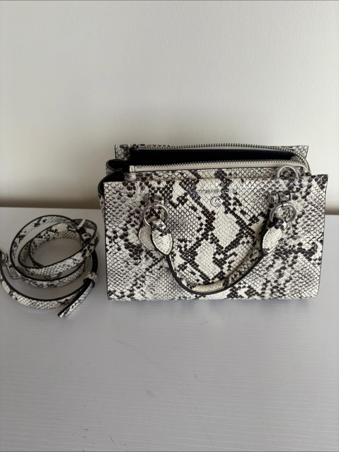 10Michael Kors snakeskin satchel with a detachable strap. It's in great condition and ready for a new home!