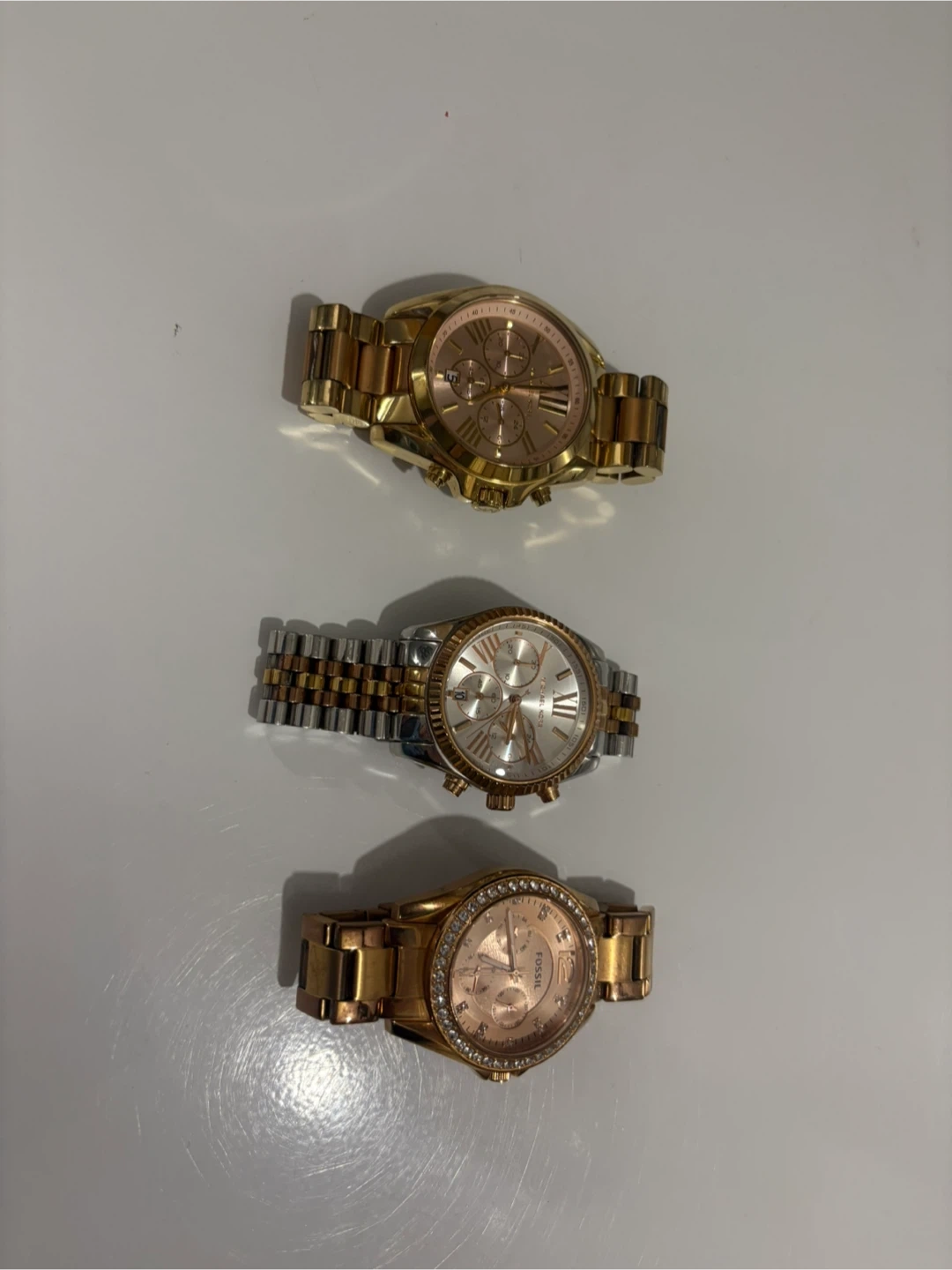 Selling a stylish Michael Kors and fossil women's watch in a two-tone silver and gold finish. It's in great condition and ready to accessorize your outfits! All 3 for $180