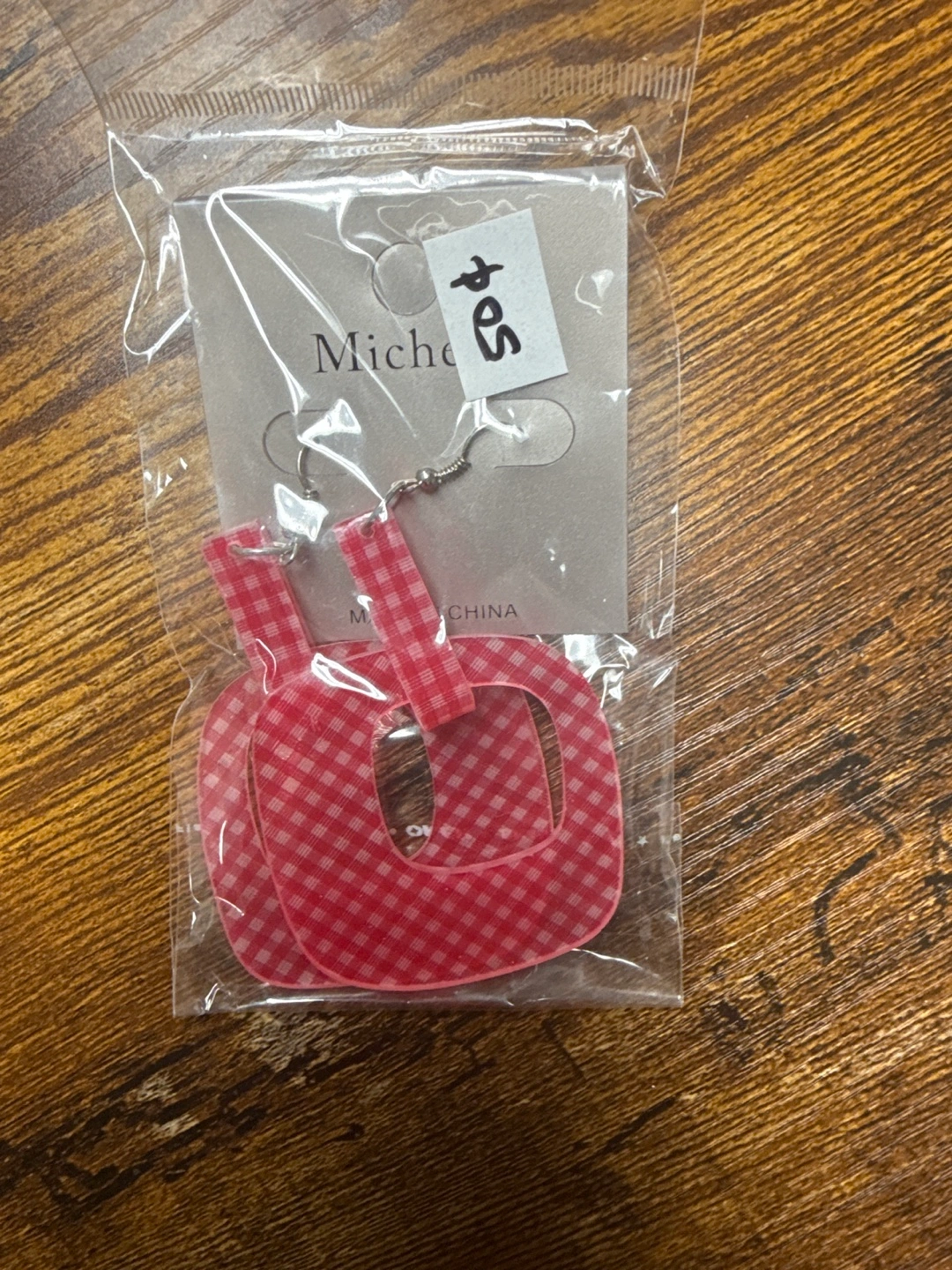 Brand new Miche earrings still in their original packaging! These cute red and white gingham earrings are perfect for adding a pop of color to any outfit