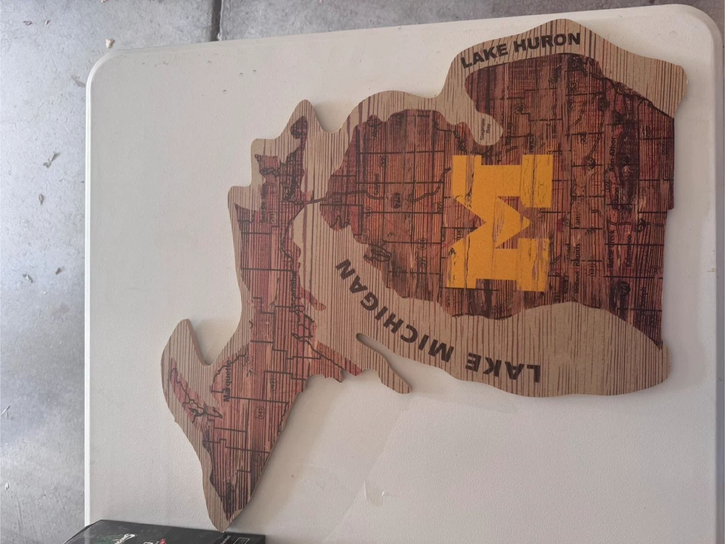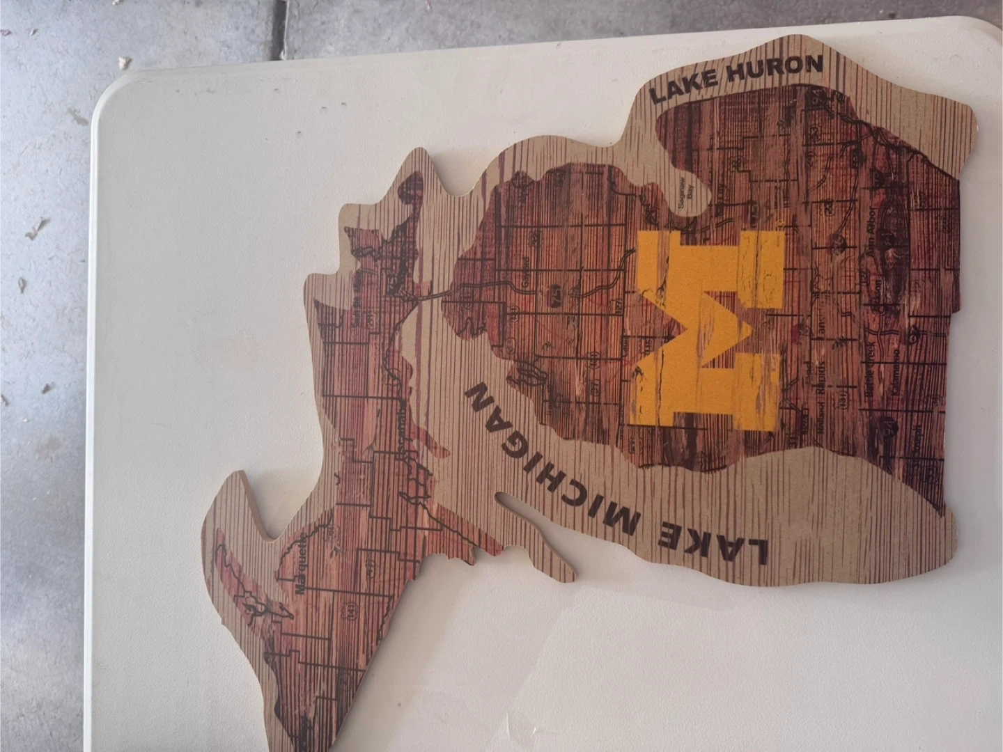 10Selling a decorative wooden map of Michigan. It features Lake Huron and has a unique design. Perfect for adding a touch of Michigan pride to your home!