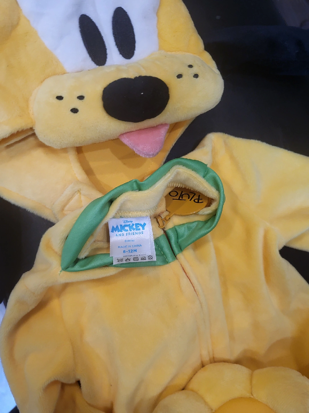 Here's a cute Pluto costume from Mickey and Friends! It's yellow and sized for 6-12 month olds. Perfect for a Disney fan!