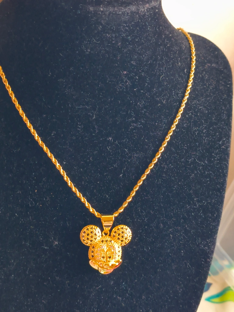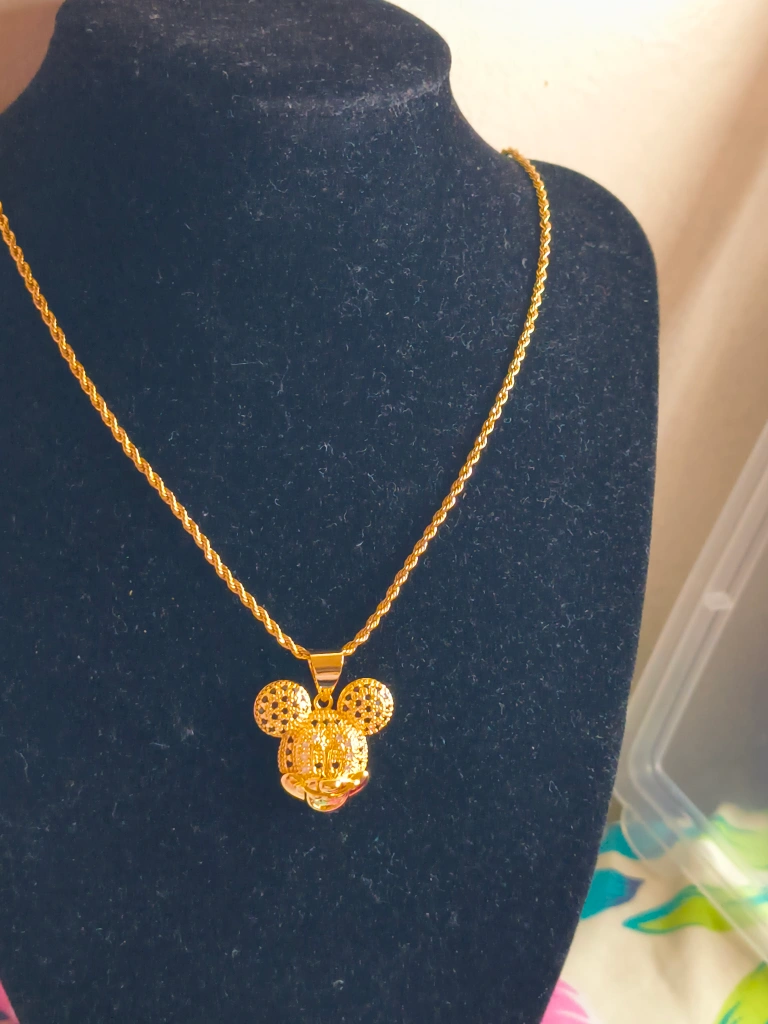Cute gold-colored necklace featuring a Mickey Mouse pendant! It's in great condition and ready to add some fun to your style