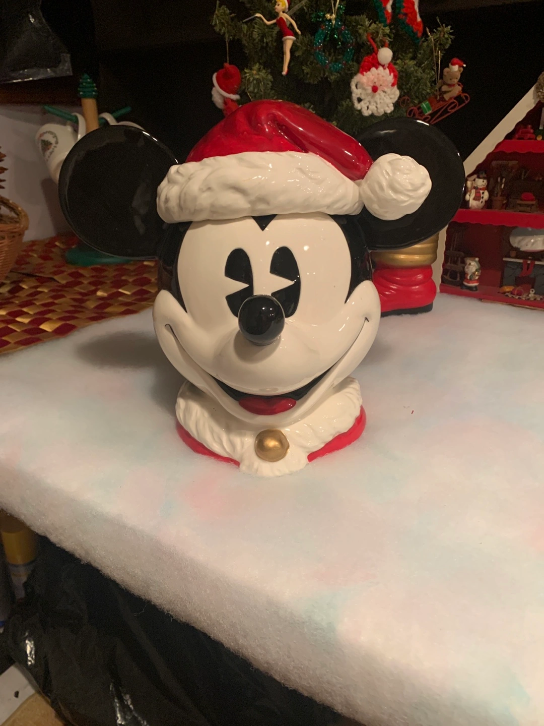 Selling a cute Mickey Mouse cookie jar dressed as Santa! It's perfect for the holidays and would look great in any Disney fan's kitchen