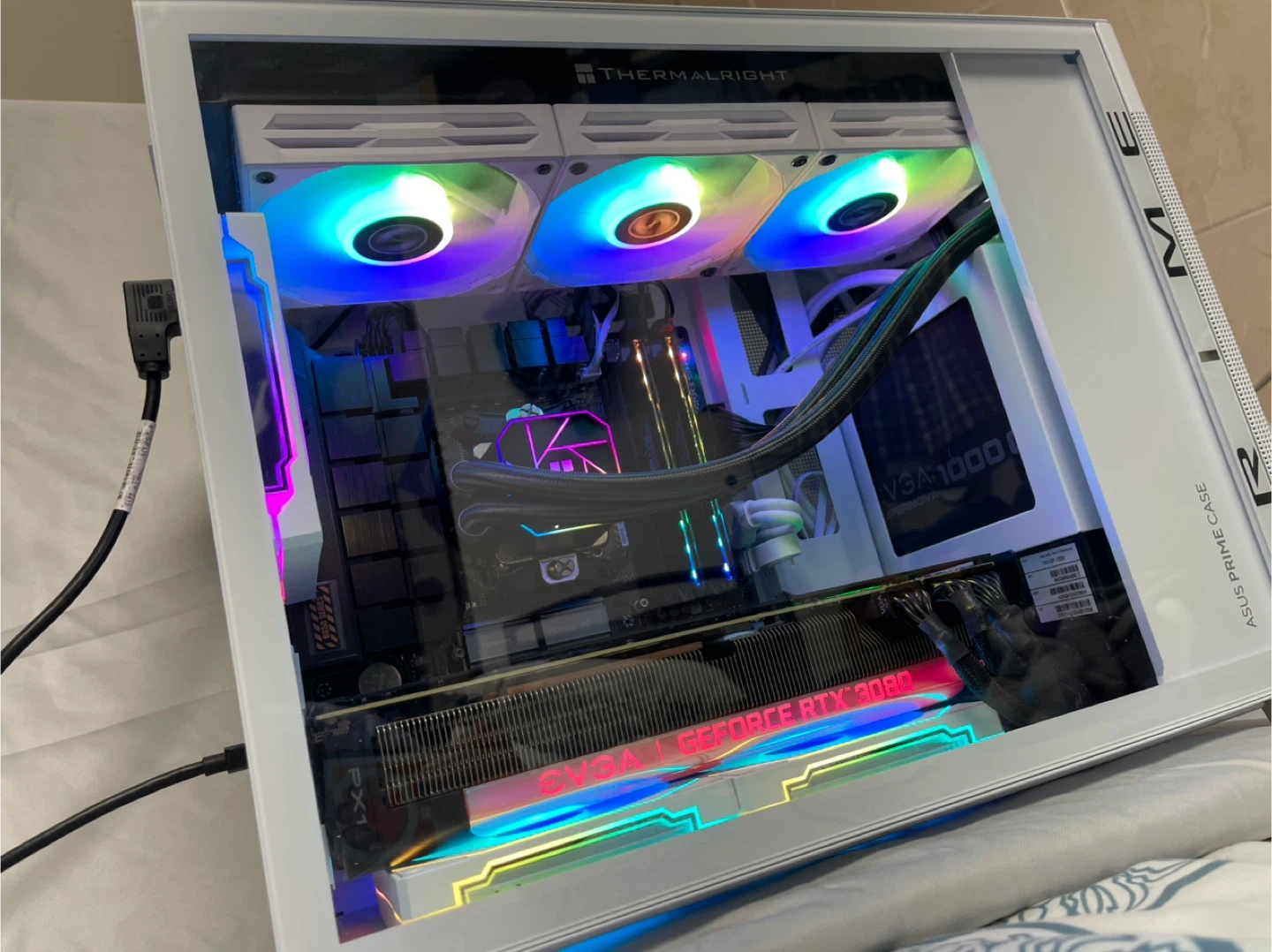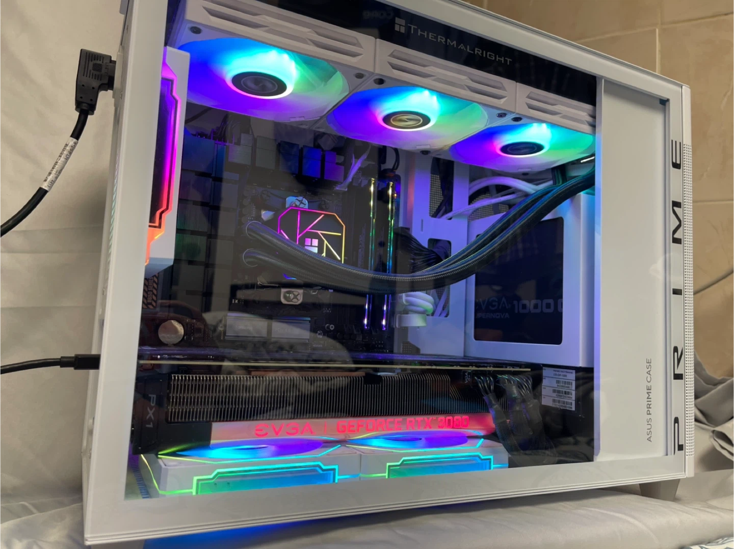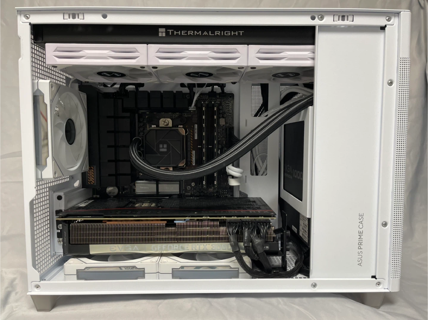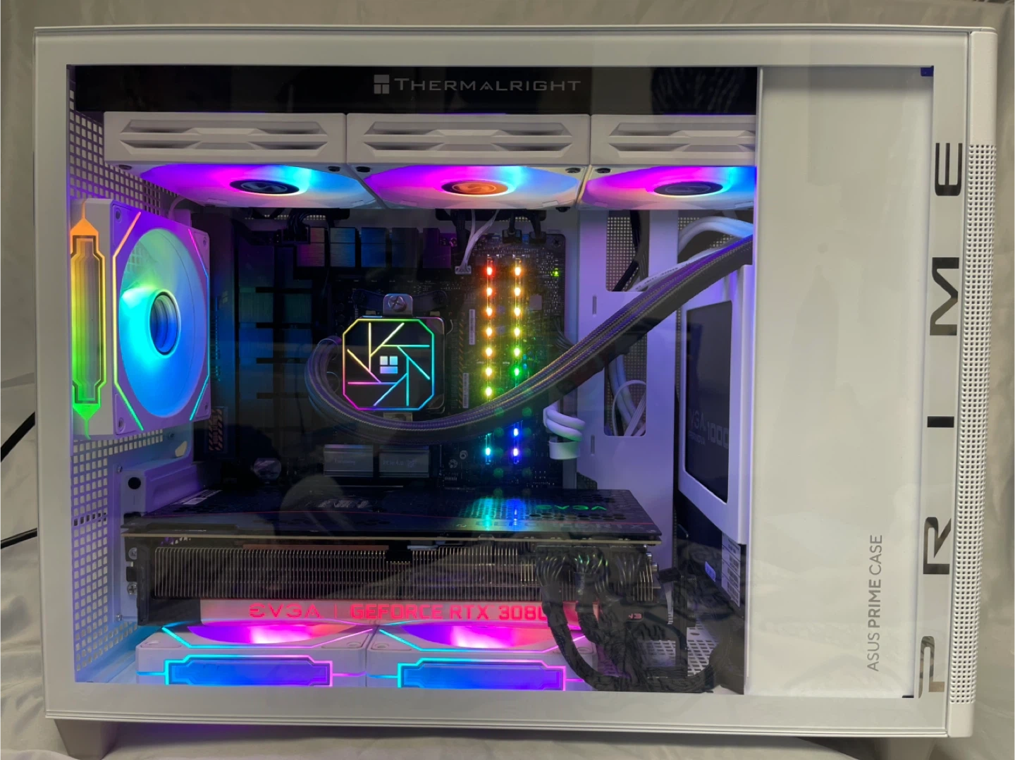 15Case: Asus Prime AP201 MicroATX Motherboard: Asus TUF B650M Gaming Wifi RAM: 32GB Corsair DDR5 RGB (no top cover) 6000mhz CPU: AMD 9600X 9000 series GPU: EVGA 3080 FTW 10GB RGB SSD: 1000GB SSD AIO: Aqua Elite 360mm Thermalite ARGB PSU: EVGA 1000GQ Fully Modular (1000w) System fans: 120mm Dual Prism ARGB daisy chain Note: only antenna and power cable are included. No scratches on the glass and metal panels. All ports are functional and working.