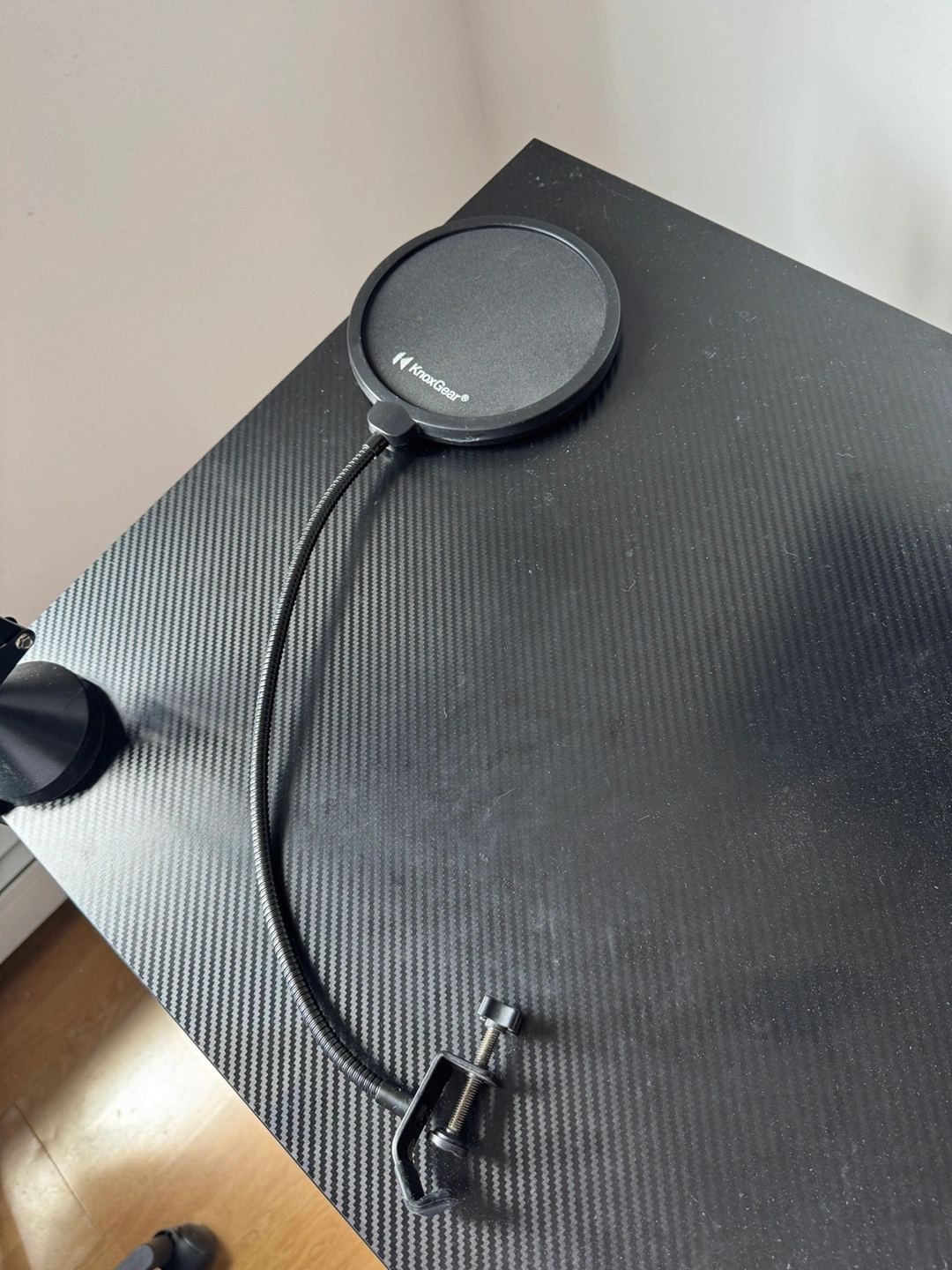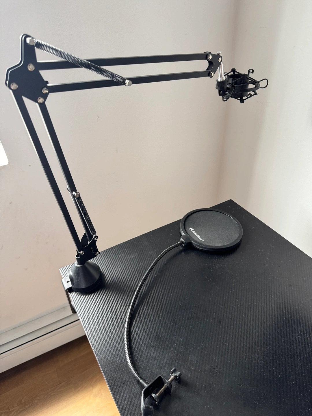 15Microphone Desk Stand and Microphone pop filter. Good for recording podcasts or streaming.