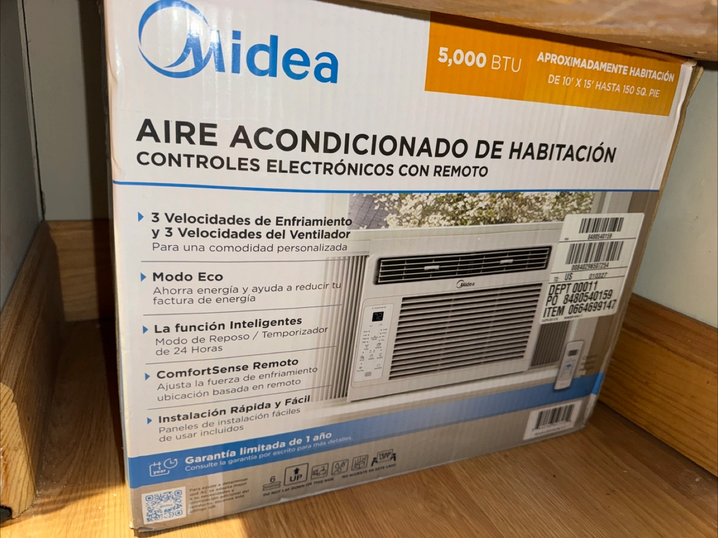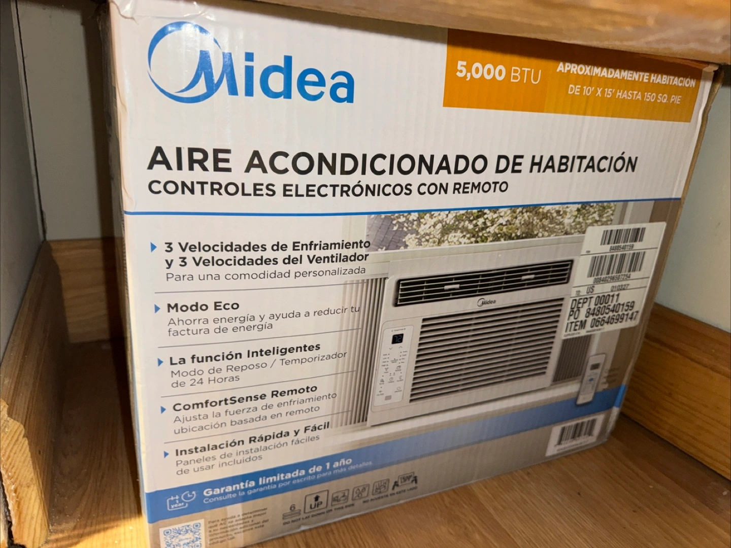 Selling a Midea 5,000 BTU window air conditioner. It's designed to cool a room approximately 10' x 15' up to 150 sq ft. Features include: - 3 cooling and 3 fan speeds for personalized comfort - Eco mode to save energy - ComfortSense remote for convenient control - Quick and easy installation with included panels