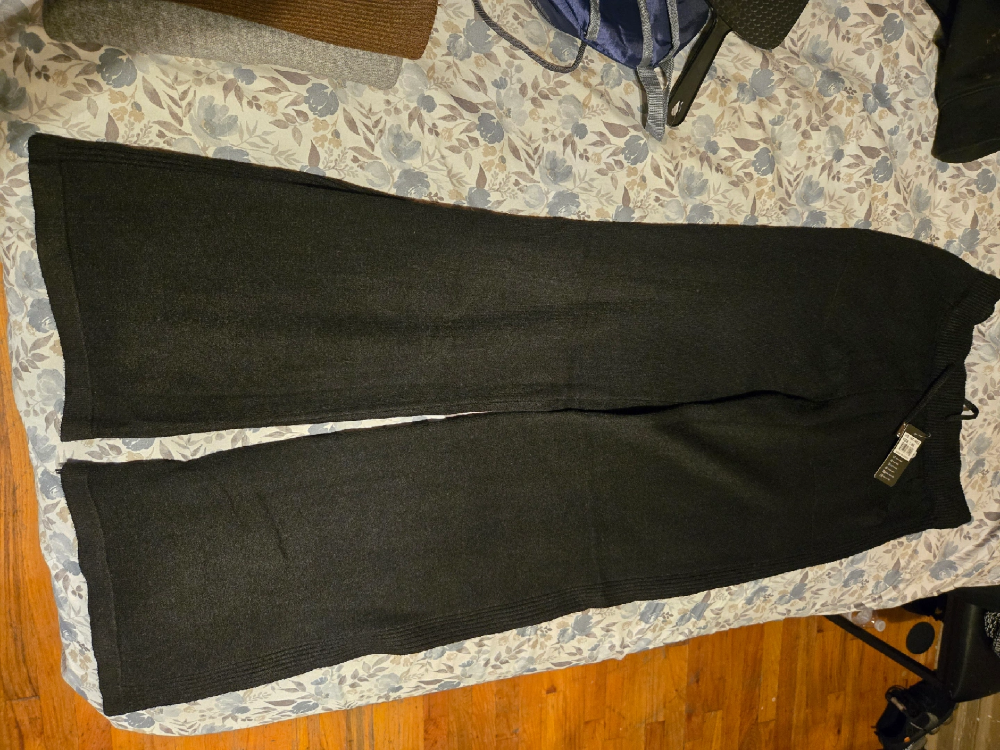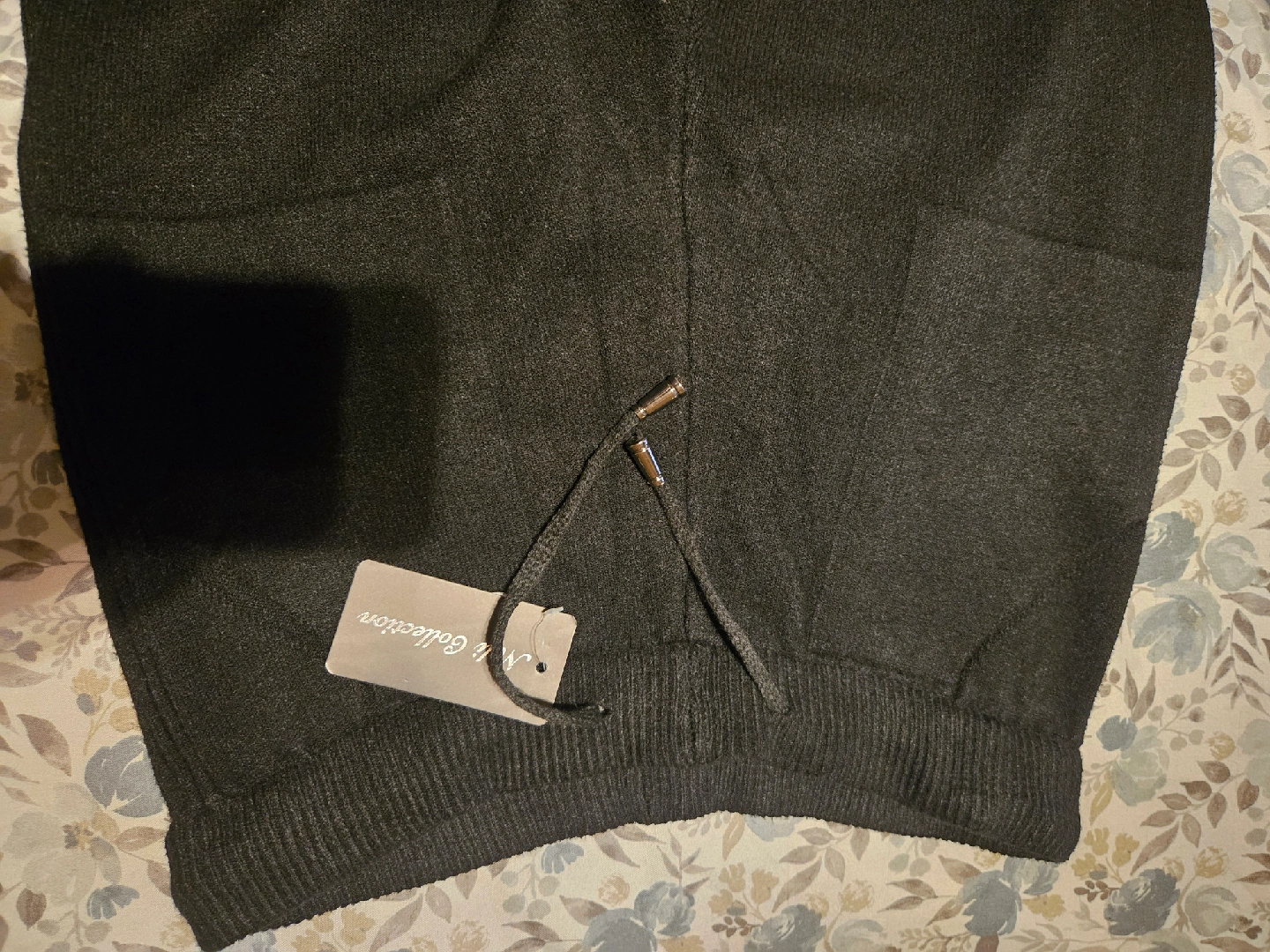 Selling a pair of Miki Collection knit pants in black! They're super comfy and perfect for lounging around or dressing up. The material is soft and cozy, making them great for any season. They feature a drawstring waist for a custom fit