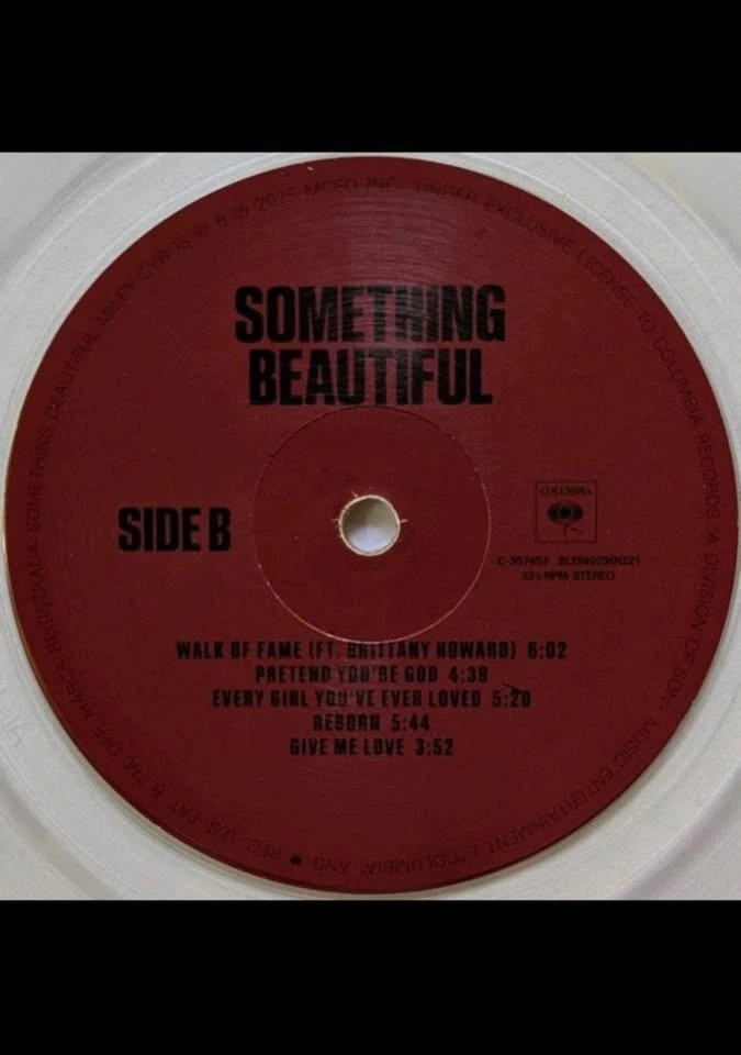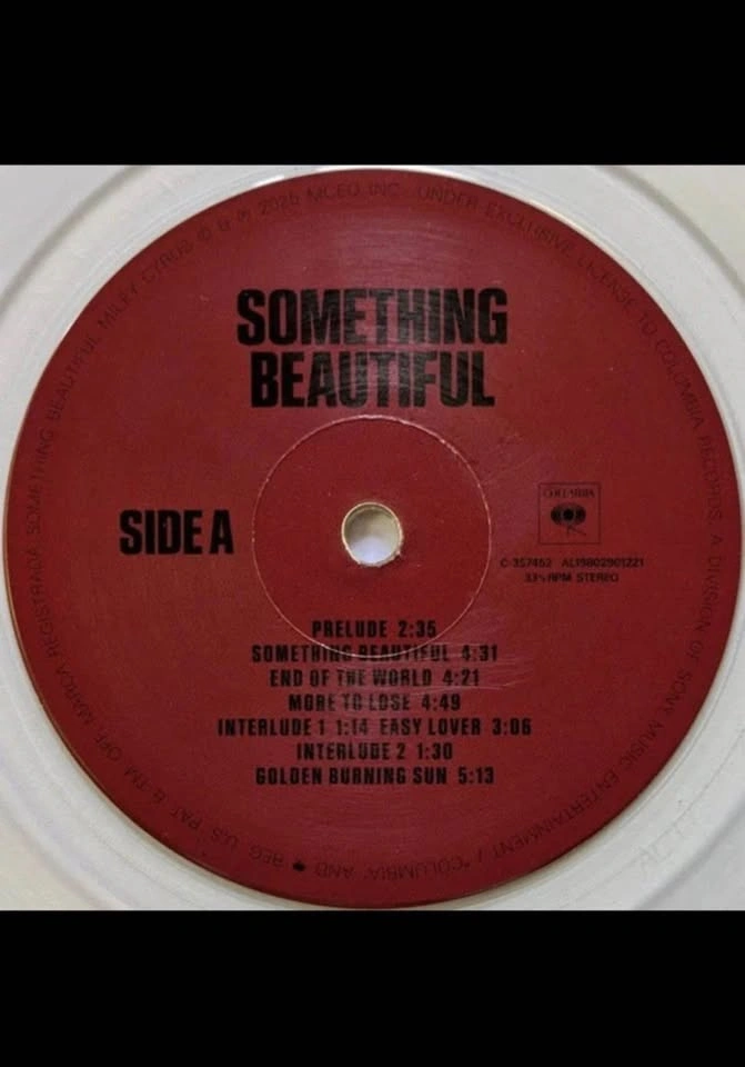 Miley Cyrus's ninth studio album, Something Beautiful, was released on May 30, 2025, through Columbia Records, and accompanied by a musical film. Cyrus announced in November 2024 that she had been working on the album. She said she took inspiration from Pink Floyd's The Wall, and the film Mandy. The album was announced on March 24, 2025. Includes booklet. Limited edition clear vinyl.