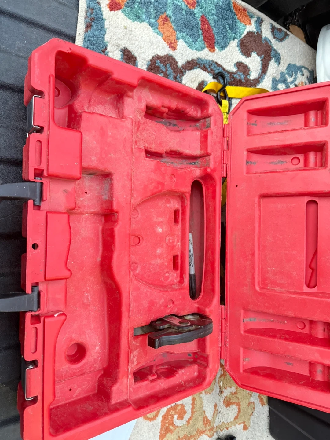 Selling a Milwaukee M12 Force Logic Press Tool Kit. It comes in a red case. Please see photos for condition