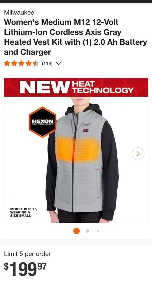 Milwaukee Womens medium M12 Cordless Axis grey Heated Vest Kit