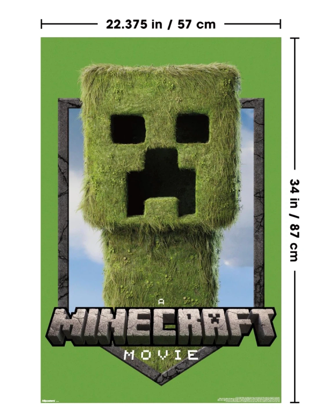 Selling a Minecraft Movie poster featuring the Creeper! The poster measures approximately 22.375 inches by 34 inches (57 cm x 87 cm). It's a great piece for any Minecraft fan