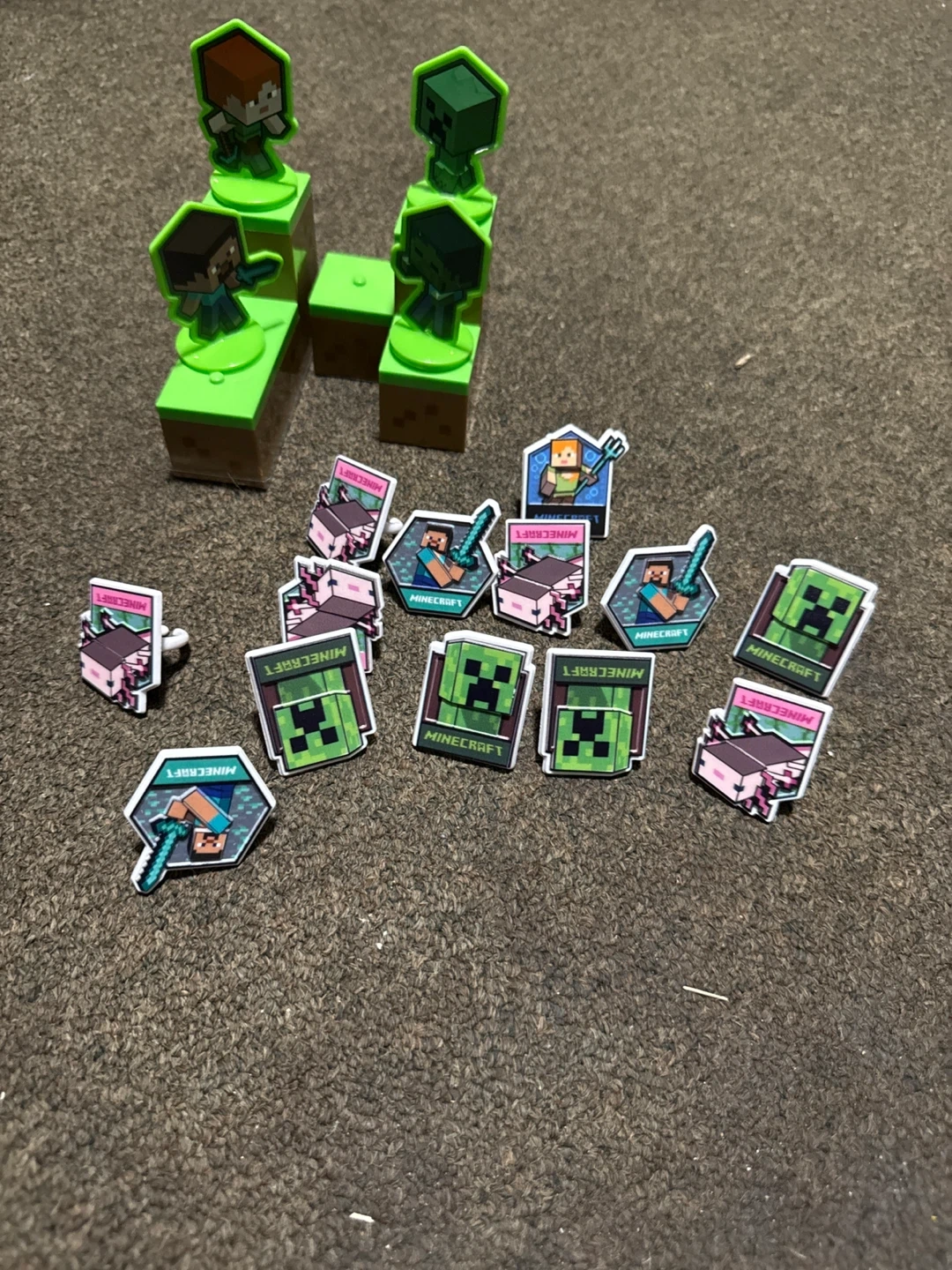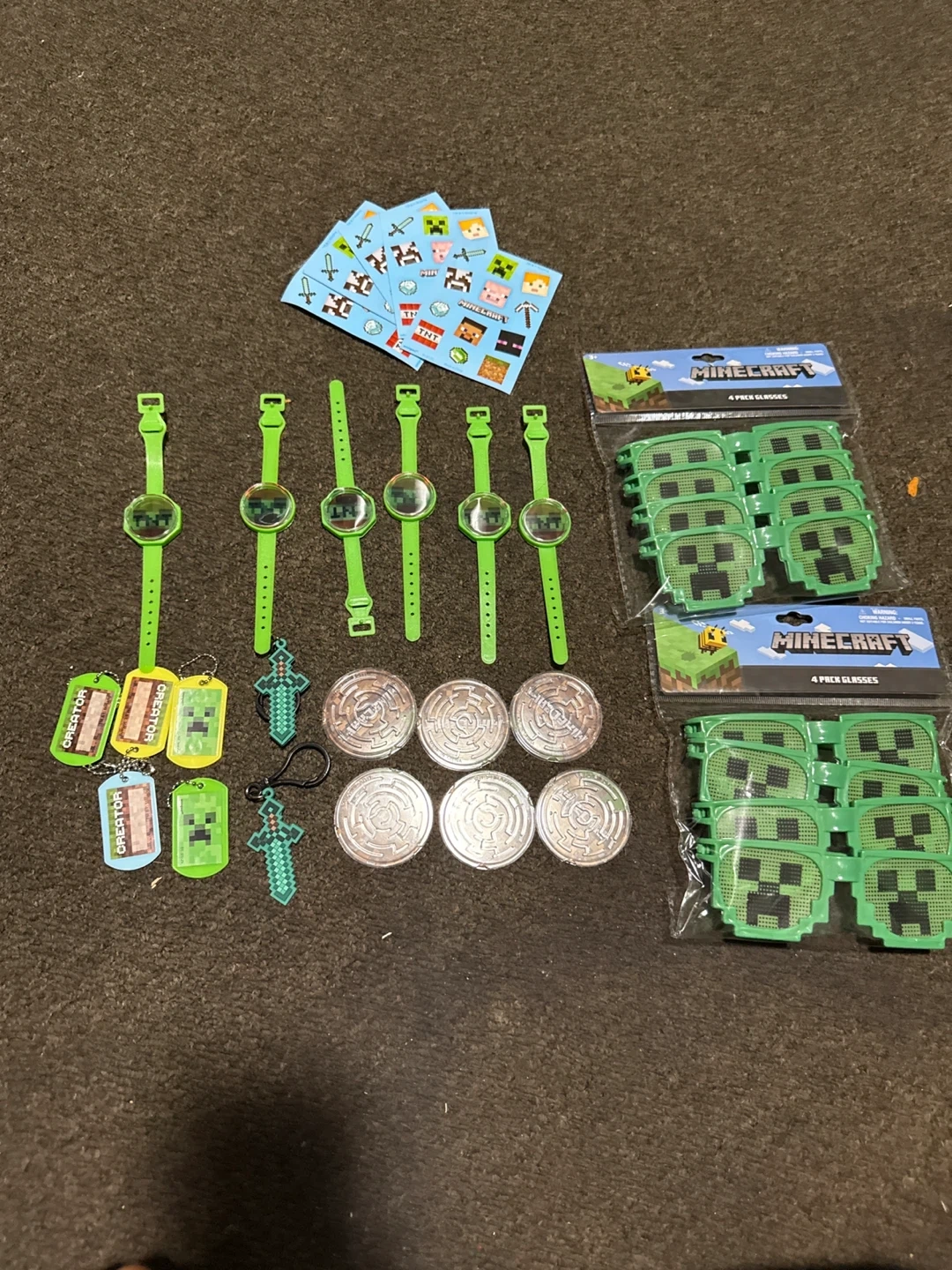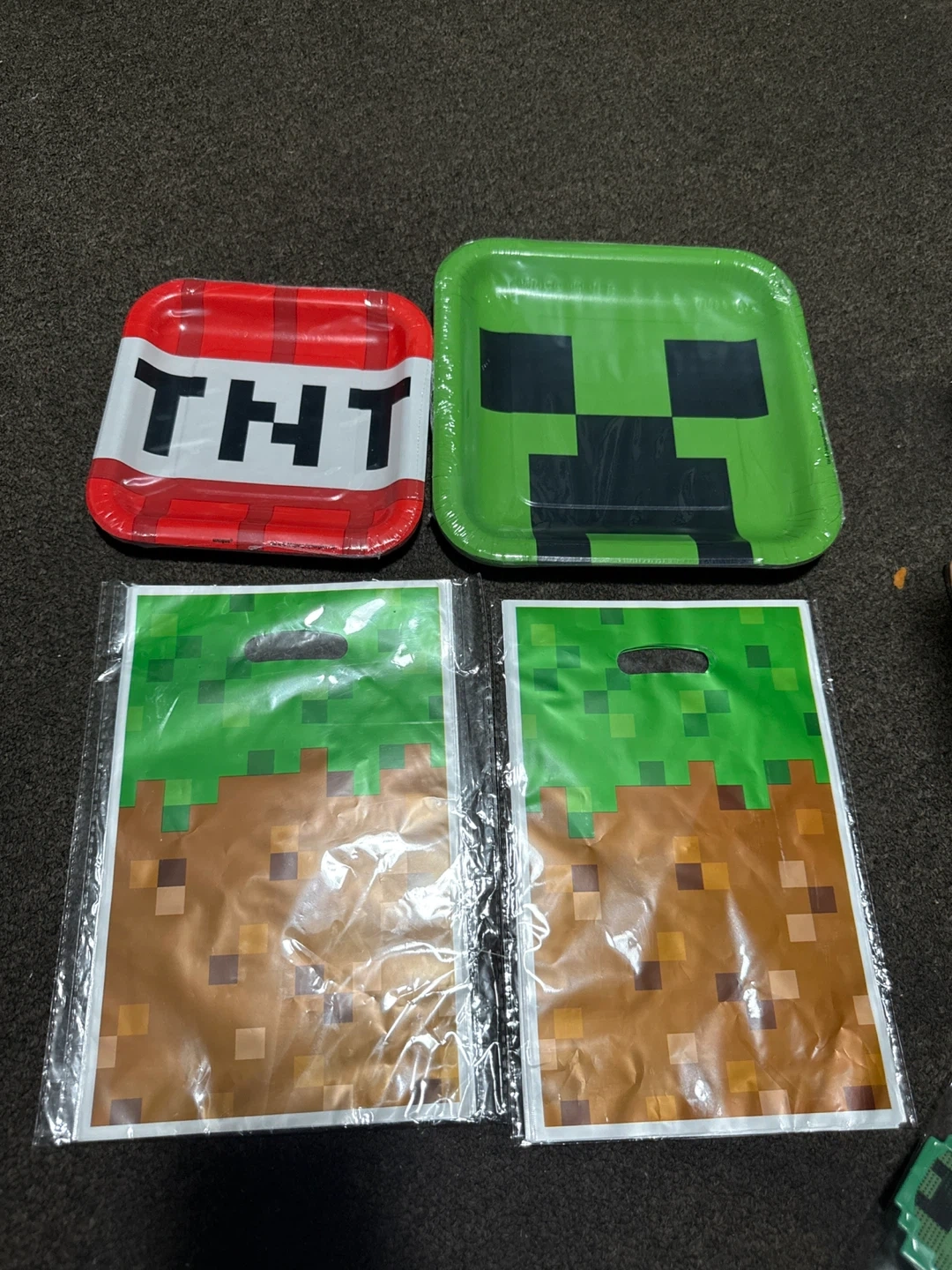 263Selling a fun bundle of Minecraft party supplies! It includes backdrop 210 cm *300 cm, 40 goodie bags , watches, glasses, stickers, plates, cake ring toppers(13) , cake topper ( 6 pieces) and a banner to make your Minecraft themed party a blast some items are new( check photos)