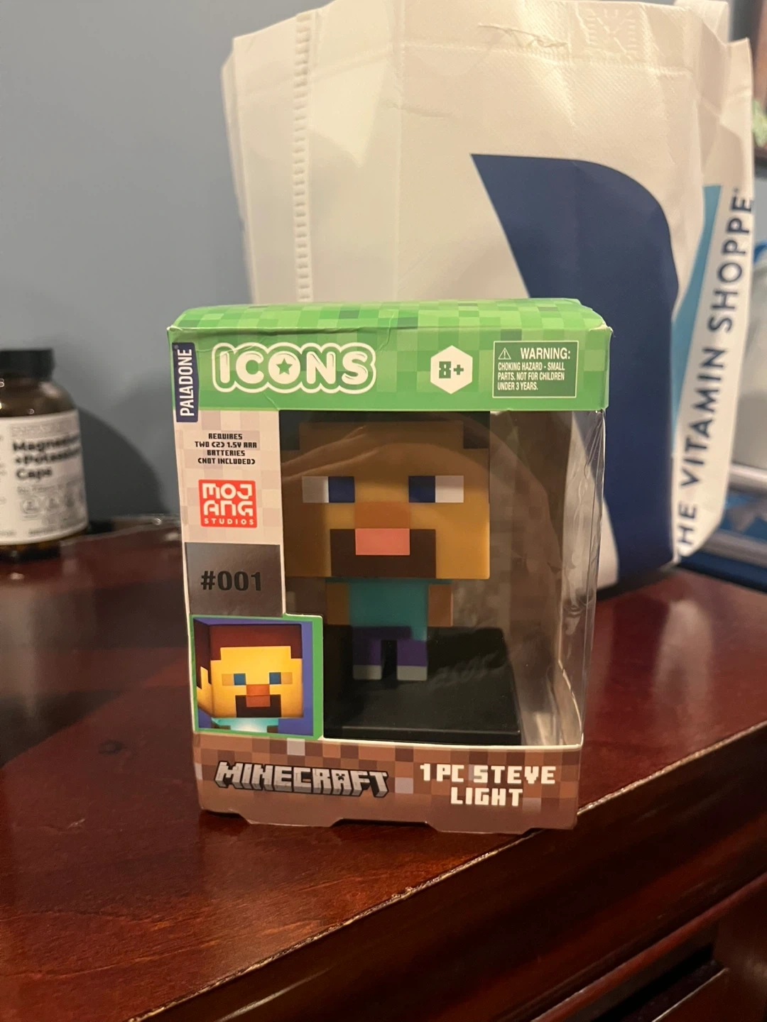 79Selling a Minecraft Steve Light from the Paladone Icons series! It's in great condition and comes with the original box. Requires 3 LR44 batteries.