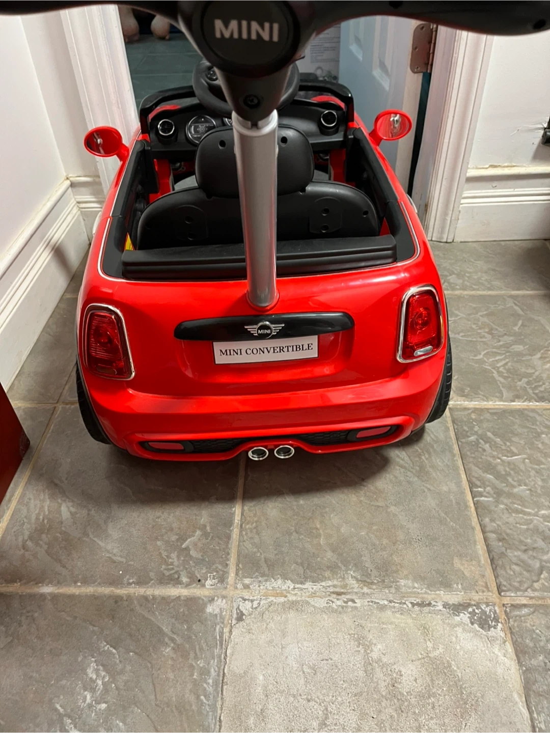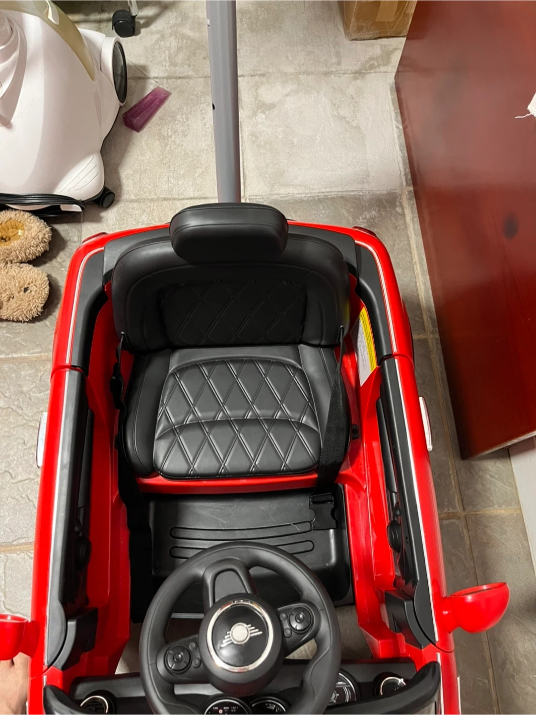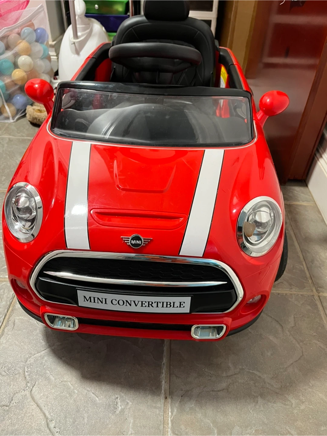 Selling a MINI Convertible ride-on car in red! It's a fun way for kids to enjoy their childhood. The car is designed to look like a real MINI Convertible, complete with the iconic styling and details My baby barely use it for a few times only so still looks great