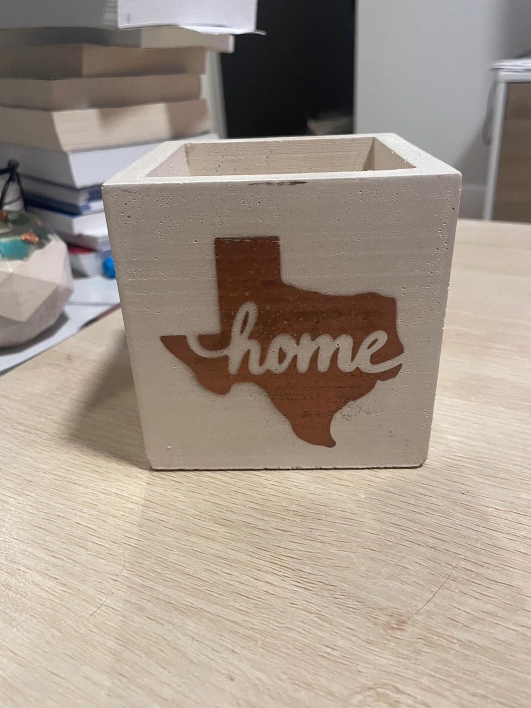 65Seven tiny flower/succulent pots. All about 3.5in x 3.5 in, except square Texas pot, which is 4in x 4in. $5 each, or $30 for all. Pick up only. In very good condition.