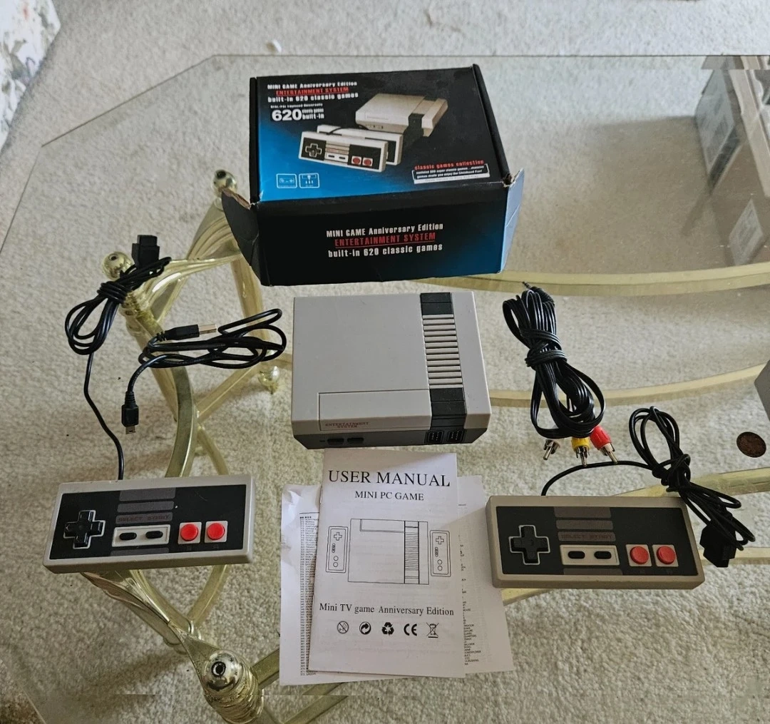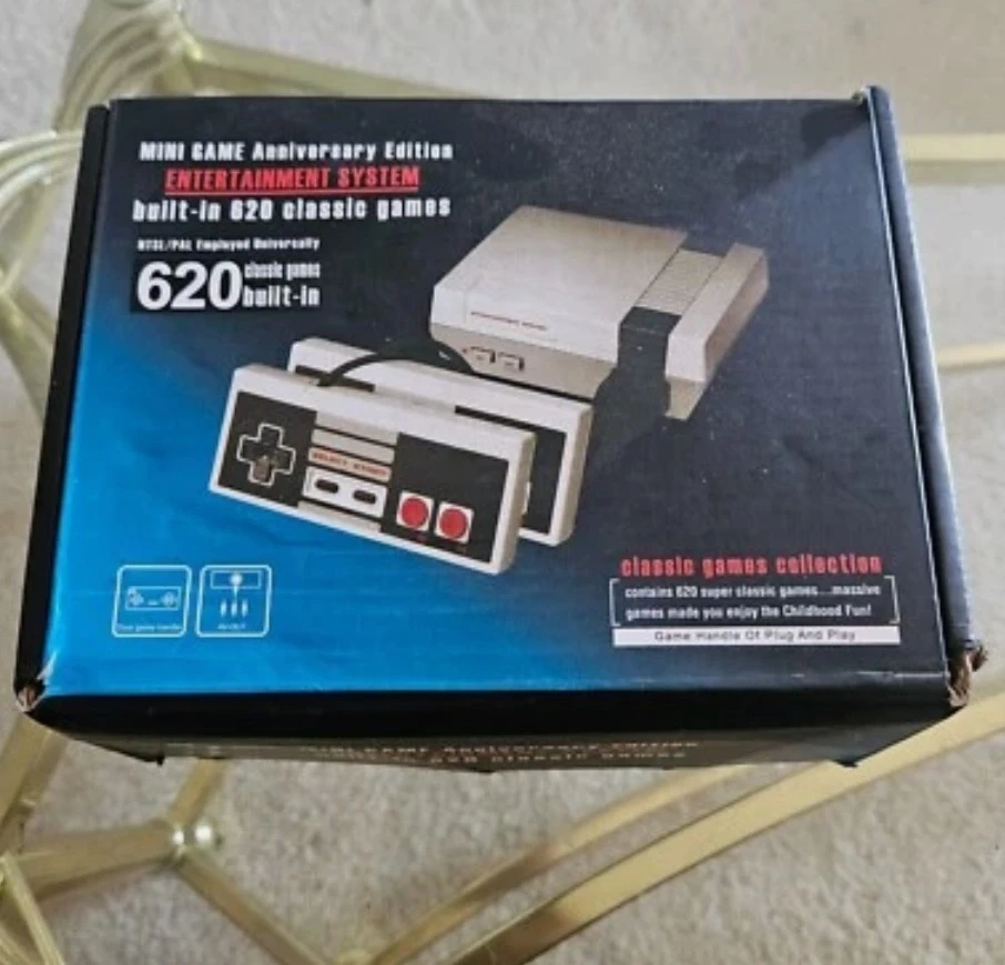 60Selling a Mini Game Anniversary Edition Entertainment System with 620 classic games built-in! It comes with two controllers, the console, and a user manual. The box is included as well